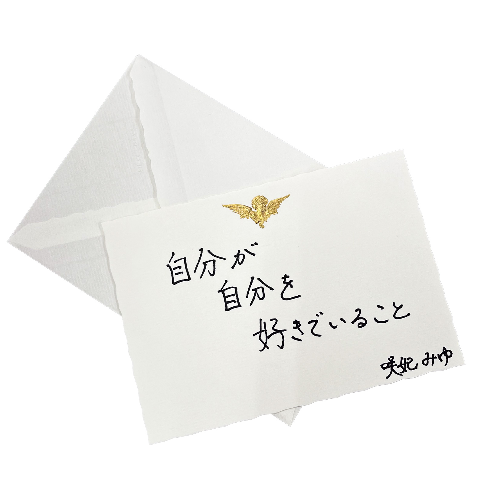 咲妃:「自分が自分を好きでいること」。長所も短所もまずは自分で認めることが美への近道。そう思うようになって意外な可能性に気付けるようになりました。宝塚は群像美の世界でもあり、その中で時々突出してしまう個性に悩んだり、娘役の理想像に縛られて体調を崩したこともありましたが、今は本名の自分との中間地点を探れるようになりました。できないことがあっても、変わってると言われても、それが私。そう思えるようになって、プライベートも仕事もいっそう楽しめるようになった気がしています。