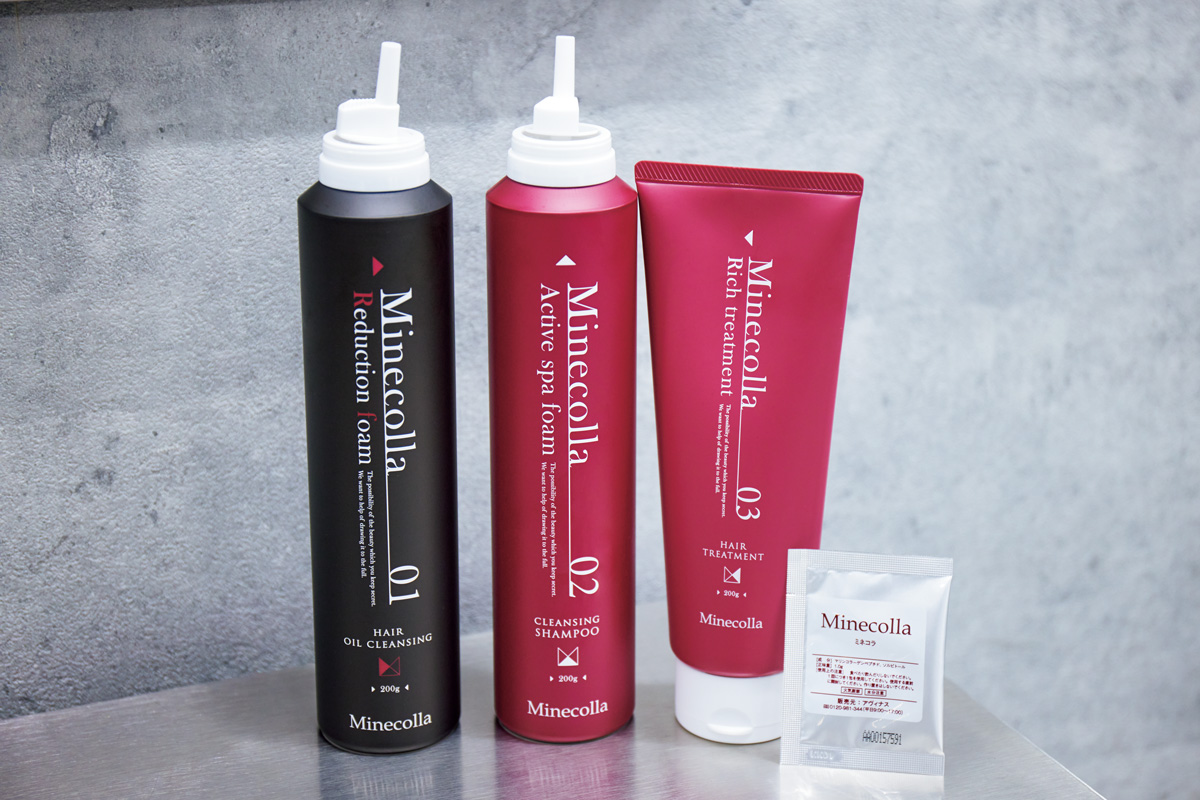 施術で使用したミネコラの水素ヘアケアガジェット。配合の白金ナノコロイドは水素とあわさることで強力な抗酸化作用が起きる。