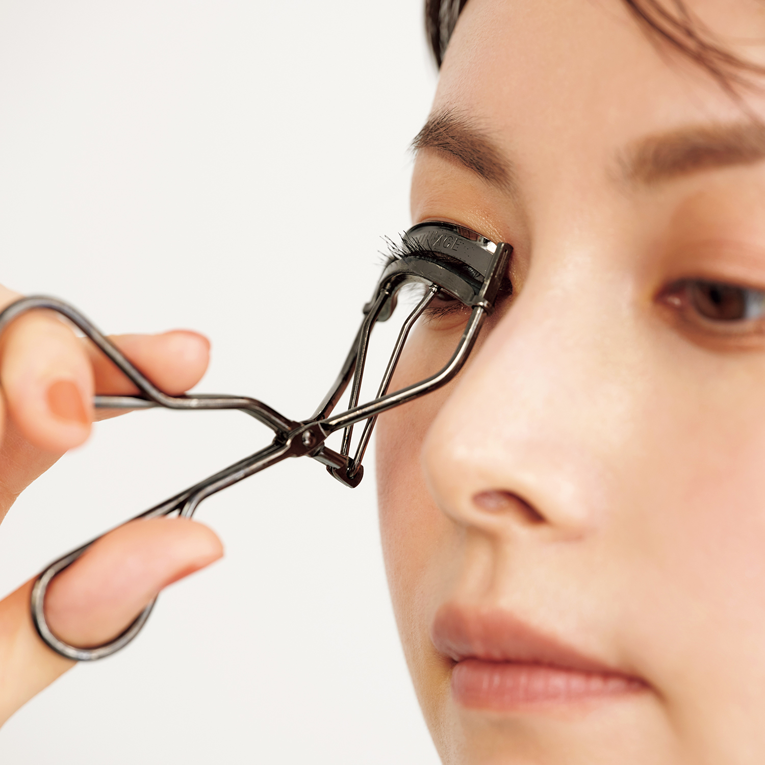 タイパ&コスパメイクでもきちんと感を出したいなら、まつ毛の濃さよりカールの有無が決め手に。マスカラ以上にビューラーは必須です!