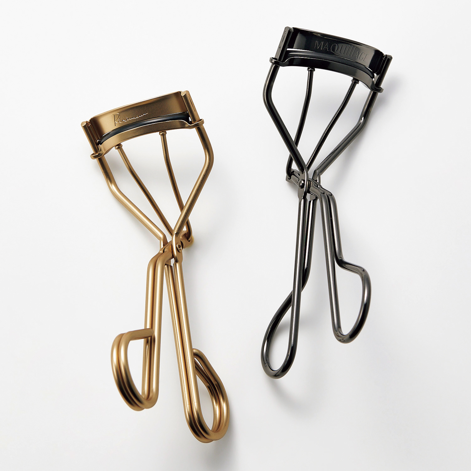 国産ビューラーが日本人の目元にフィット。左:圧巻のカールアップ力!リリミュウ アイラッシュカーラー ¥1,980(コージー本舗)右:ゴムが硬めでまつ毛を根元からキャッチ。エッジフリー アイラッシュカーラー ¥1,100<編集部調べ>(マキアージュ)