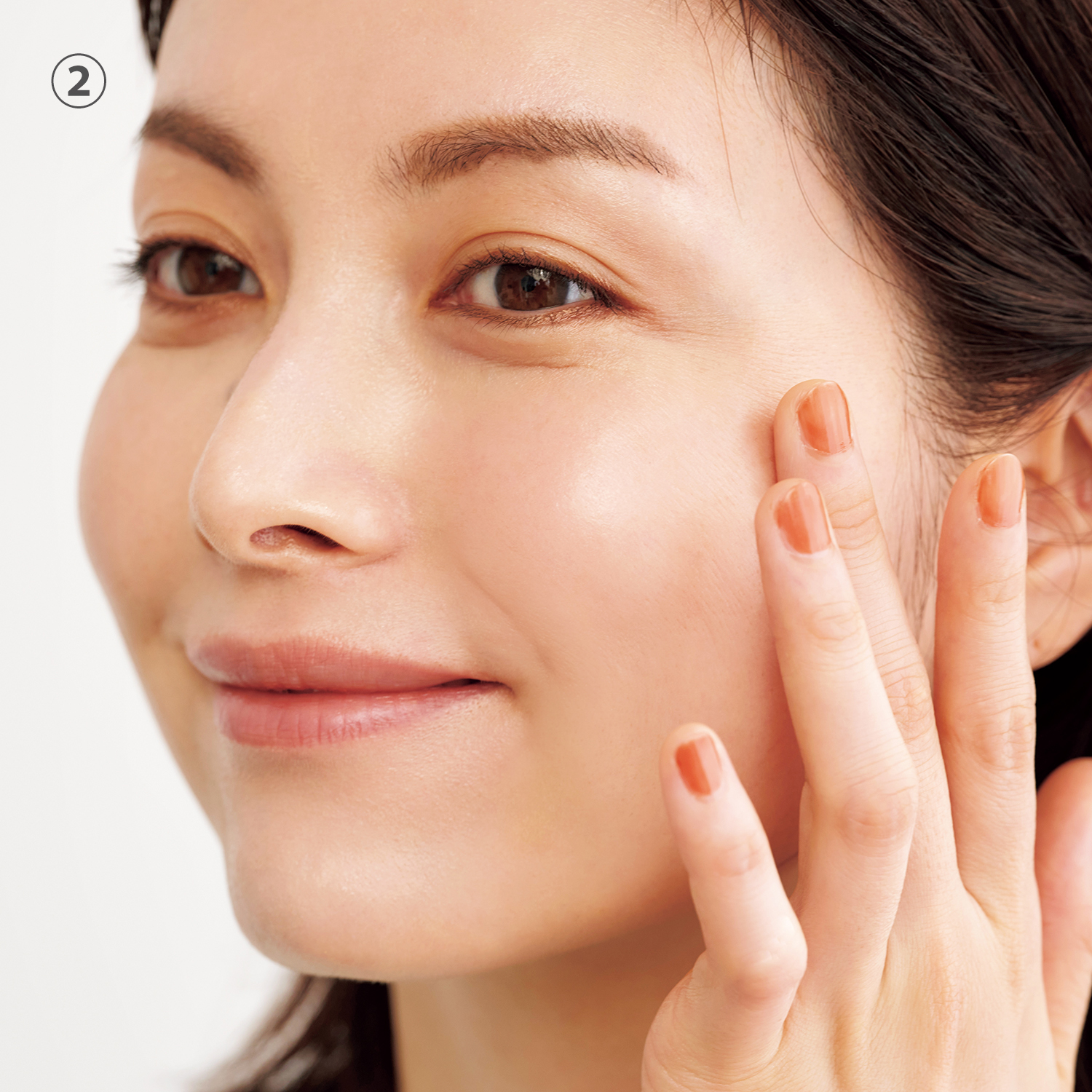 美ST世代に不可欠な血色感。ただ、色が出すぎると逆効果に。チップで直塗りせず一度手元に出すのが少量を薄く伸ばすコツ。