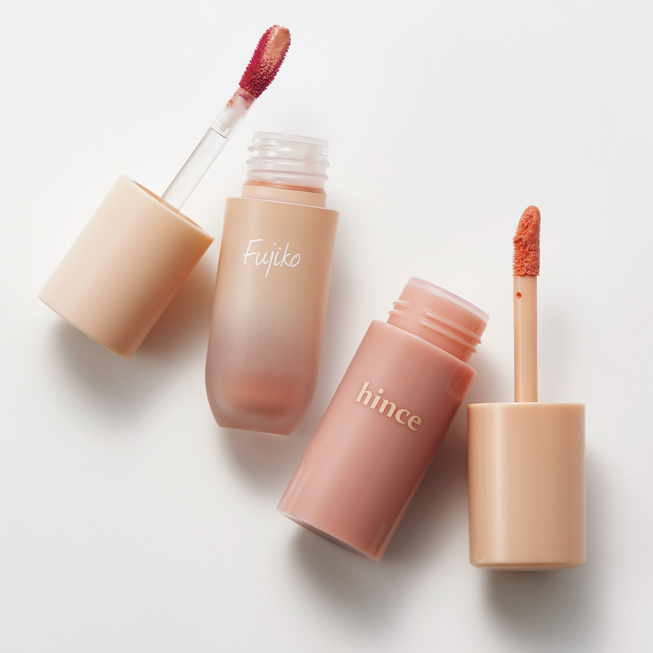 左:フワッと内側から滲み出るように発色。唯一無二の発光水ツヤを実現。フジコ 水彩チーク 01 3.8g ¥1,760(かならぼ)右:濡れツヤを帯びたクリアな色が持続。デューイーリキッド チーク LC002 6ml ¥2,200(hince)