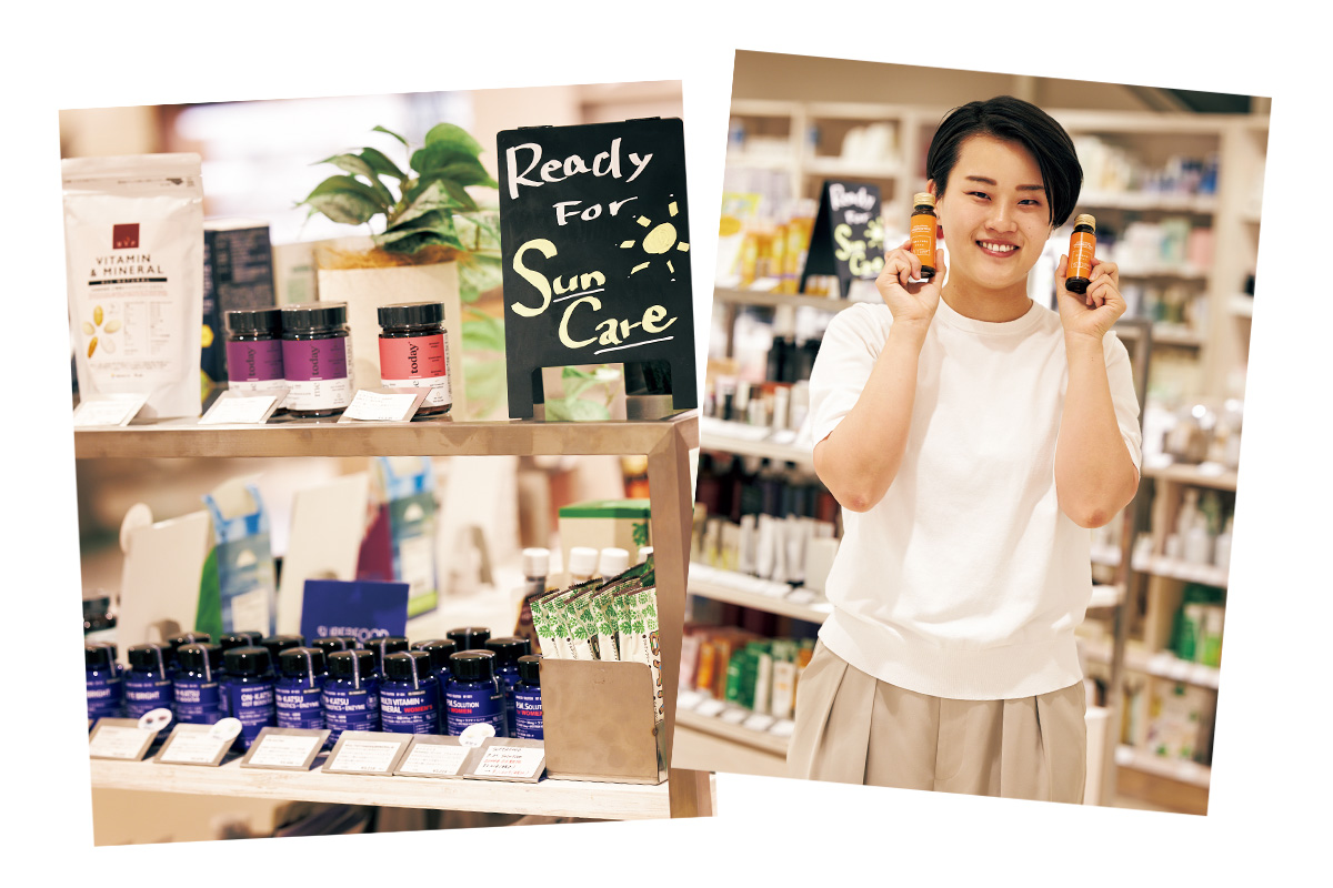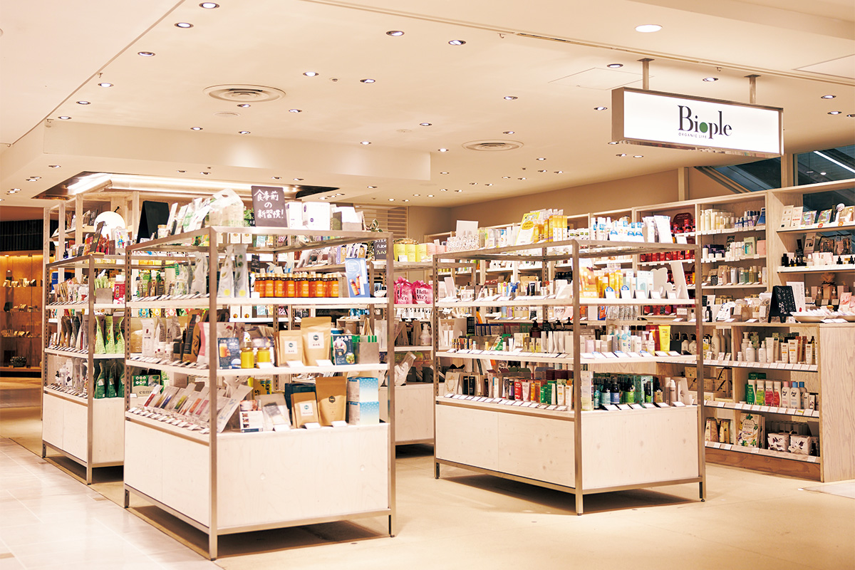 約500種類のインナーケアやフード、ドリンクを取り扱うBiople。そこでバイイングを担当する浜津さん。ルミネエスト店では働く女性に向けた商品が充実。