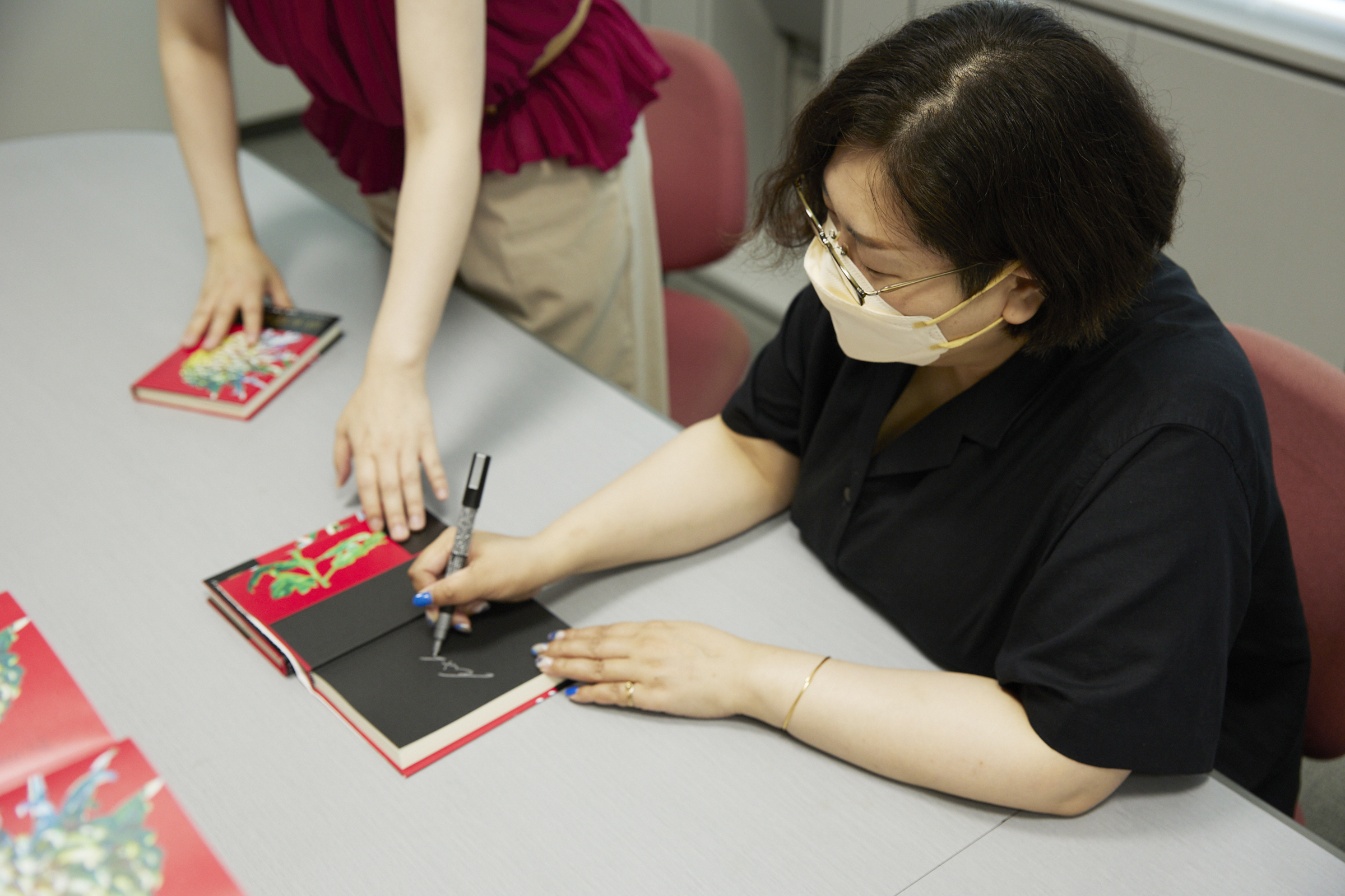 サイン中の様子。東京・大阪で開かれたサイン会には一穂さんファンがたくさん集まりました。