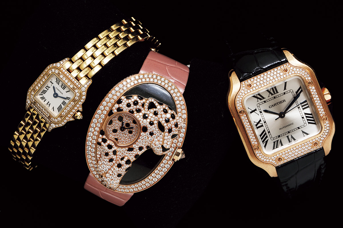 カルティエの時計は芸術品だと思っています。特にパンテールの時計はスタイルに華を添えてくれるパワーアイコン。パーティではカンバセーションピースの役割も。