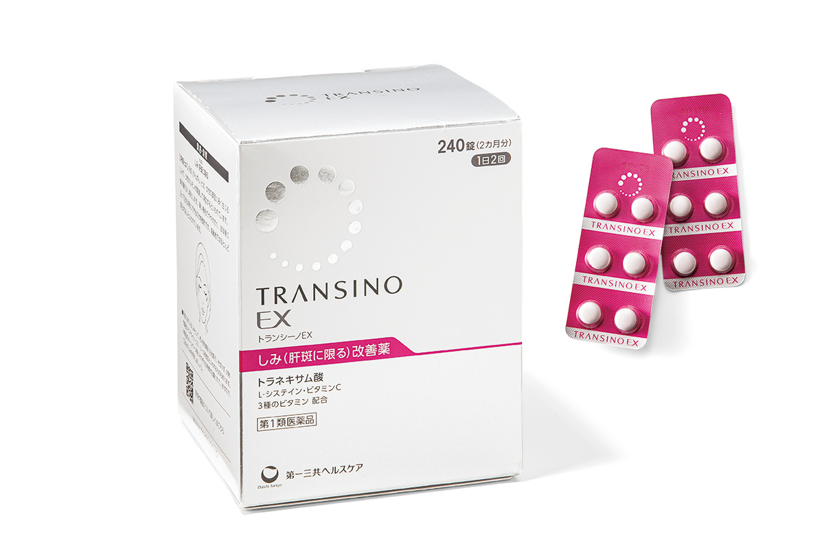 メラニンの生成を抑えて肝斑を改善。トランシーノEX【第1類医薬品】240錠¥7,260※編集部調べ(第一三共ヘルスケア)