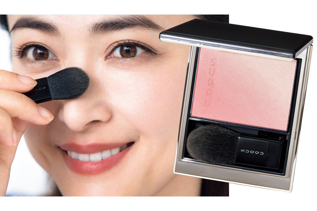 柔らかな印象のベビーピンクのチーク&ハイライト。SUQQU ブラーリング カラーブラッシュ 01 ¥6,600(SUQQU)