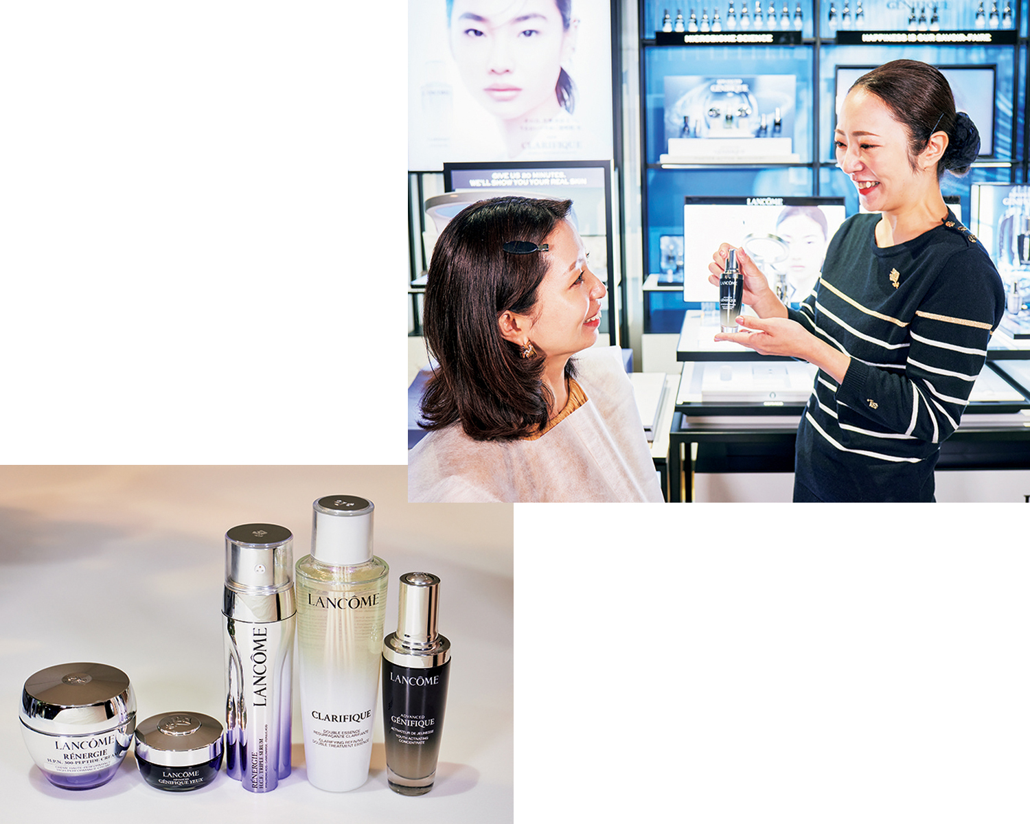「ジェニフィック アドバンスト N 50ml¥16,940 /左下の写真右」を筆頭に、毛穴ケアはもちろん、キメやシミ・シワ悩みにも対応し肌全体を底上げする商品ラインナップ。バランスの良い肌を目指す。