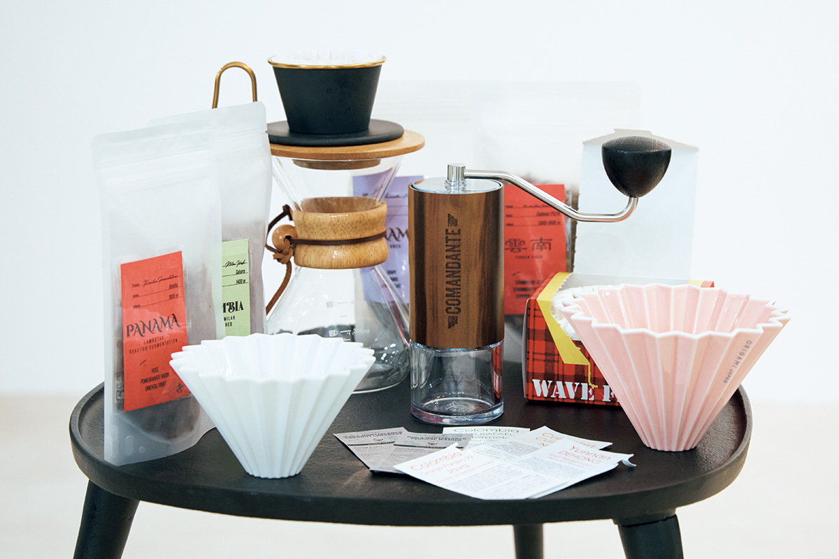 珈琲器具にもこだわり、豆は「ou-bai-tou・ri coffee roasters」「Acid coffee」などで購入し、ドリップコーヒーやミルクブリュを作っています。