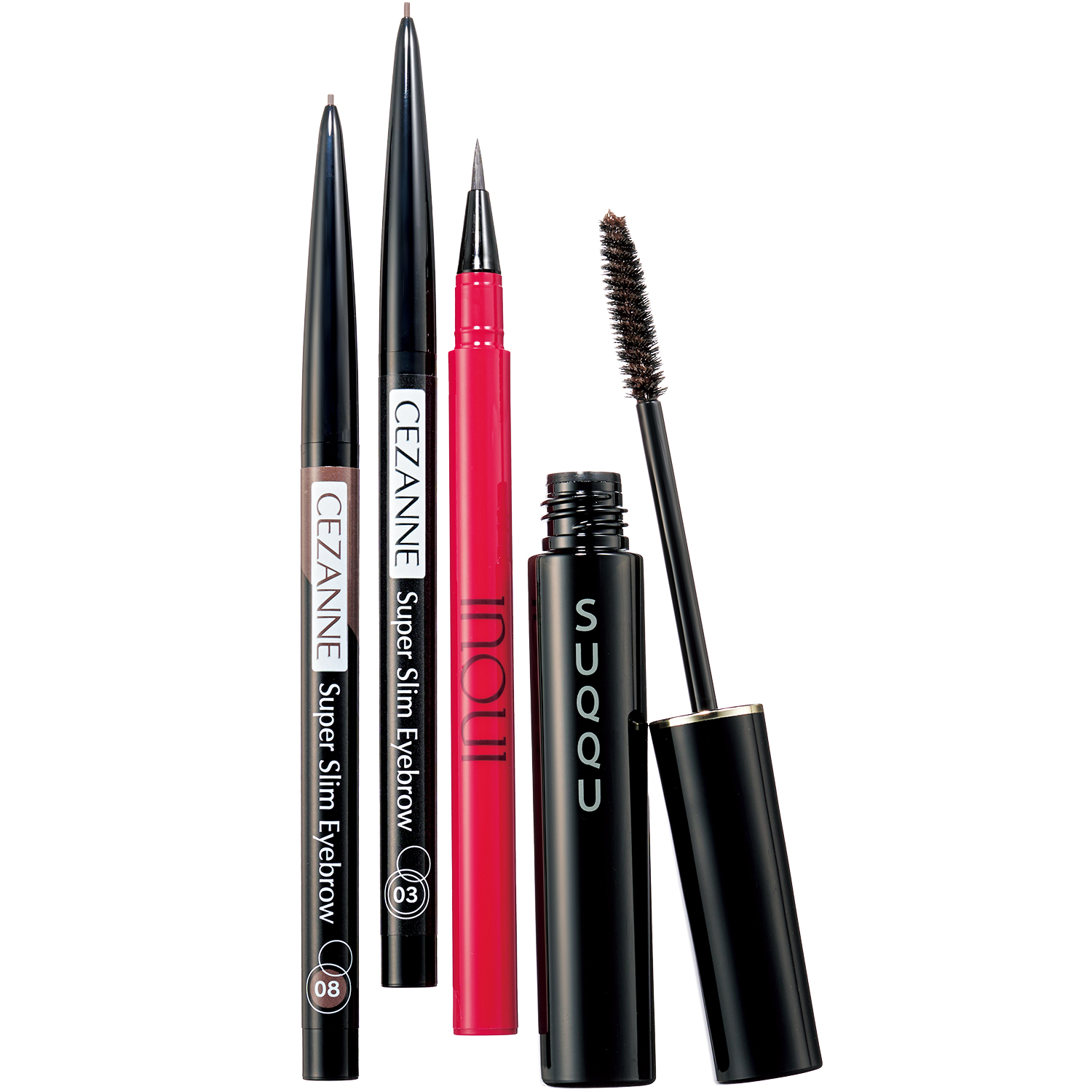 ベタ塗りではなく、毛流れを生かした隙間のある眉毛が旬。カラーも数色使い、1本1本丁寧に描いて立体感を出すのが◎。左から:0.9mmの芯で1本1本描ける。ウォータープルーフで汗をかいても崩れにくい。セザンヌ 超細芯アイブロウ 03、08 各¥550 (セザンヌ化粧品)絶妙な硬さのペンで描きやすい。透明感のあるツヤ眉毛に。インウイ アイブロウリキッド 全2色 0.5ml ¥3,300(資生堂)美しい毛流れをキープできるアイブロウジェル。SUQQU セッティング アイブロウ ジェル ¥3,520※9月6日発売(SUQQU)