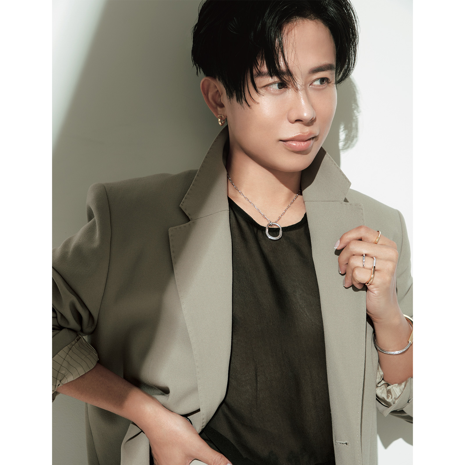 ジャケット、ベスト〈ともに参考商品〉(ともにエンポリオ アルマーニ/ジョルジオ アルマーニ ジャパン)ピアス¥720,500ネックレス¥3,960,000バングル¥2,640,000ブレスレット¥1,991,000リング¥797,500(すべてティファニー/ティファニー・アンド・カンパニー・ジャパン・インク)