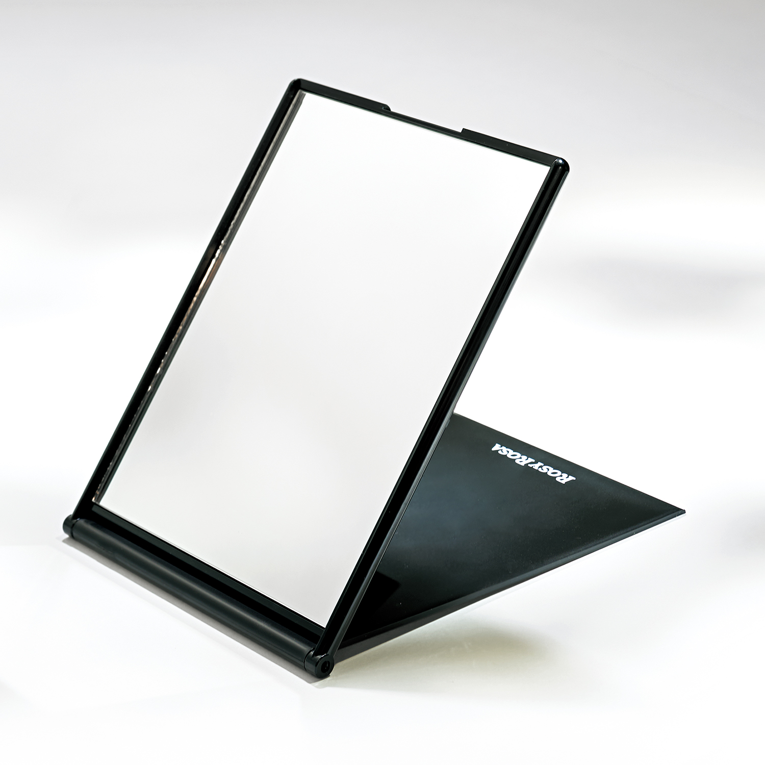 高い反射率が特徴の銀引きミラーが肌色をクリアに映す。ロージーローザ リアルックミラー ¥770(ロージーローザ)