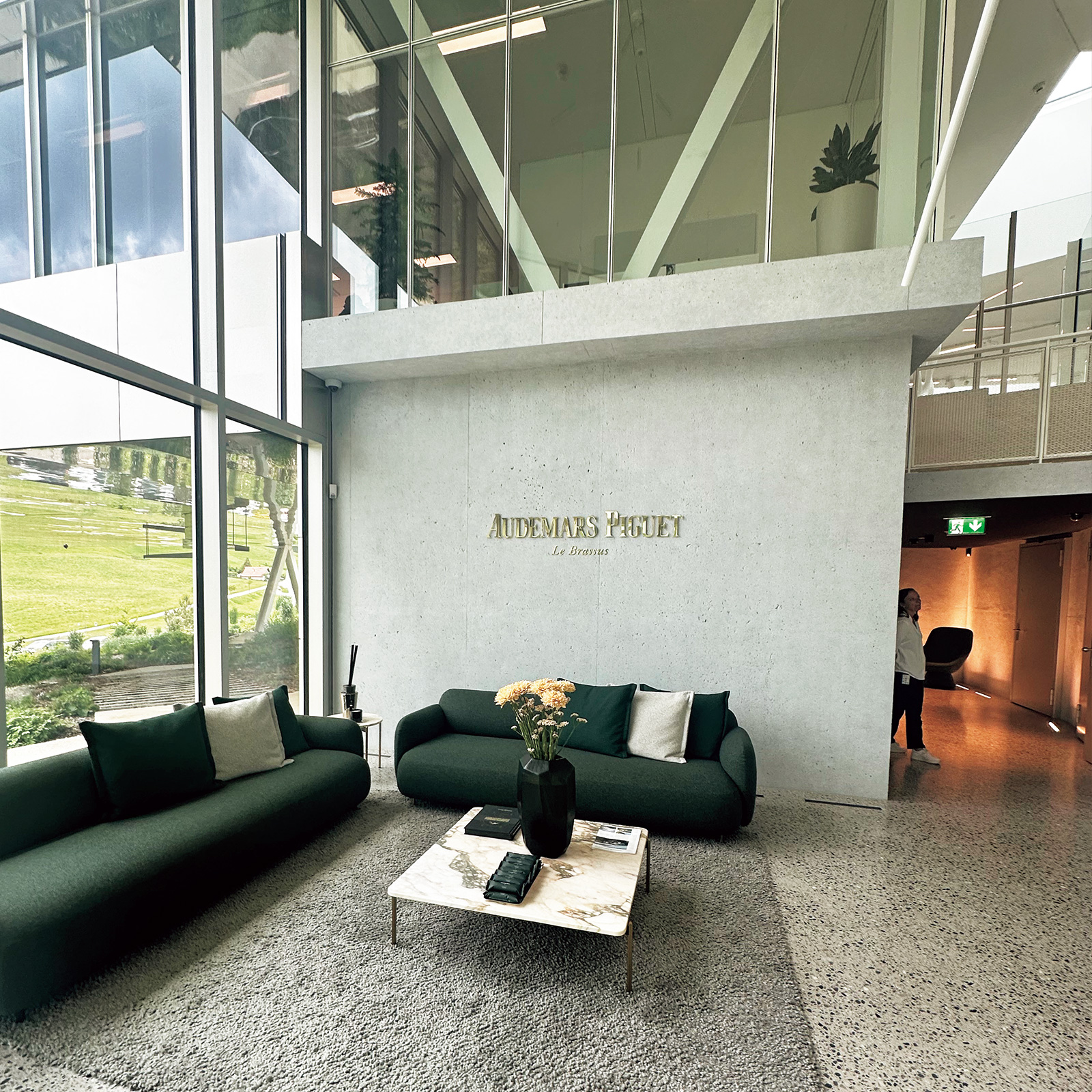 オーデマ ピゲ ル・ロックルが撮影OKなのは外観とエントランスのみ。時計界の神、ジュリオ・パピ氏が指揮をとるオーデマ ピゲの真の心臓部。他社への複雑機構の提供も行われるほど、唯一無二のファクトリー。