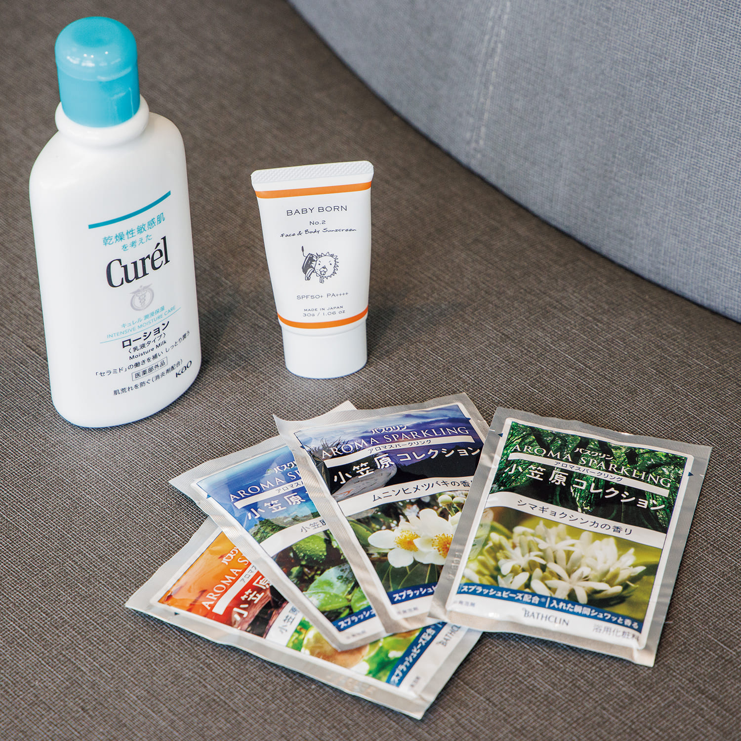 長風呂はできませんが、毎日湯船に浸かって代謝を上げるように心がけています。生後5カ月の次男も一緒に入れる、バスクリンのアロマスパークリングやキュレルの入浴剤を愛用。