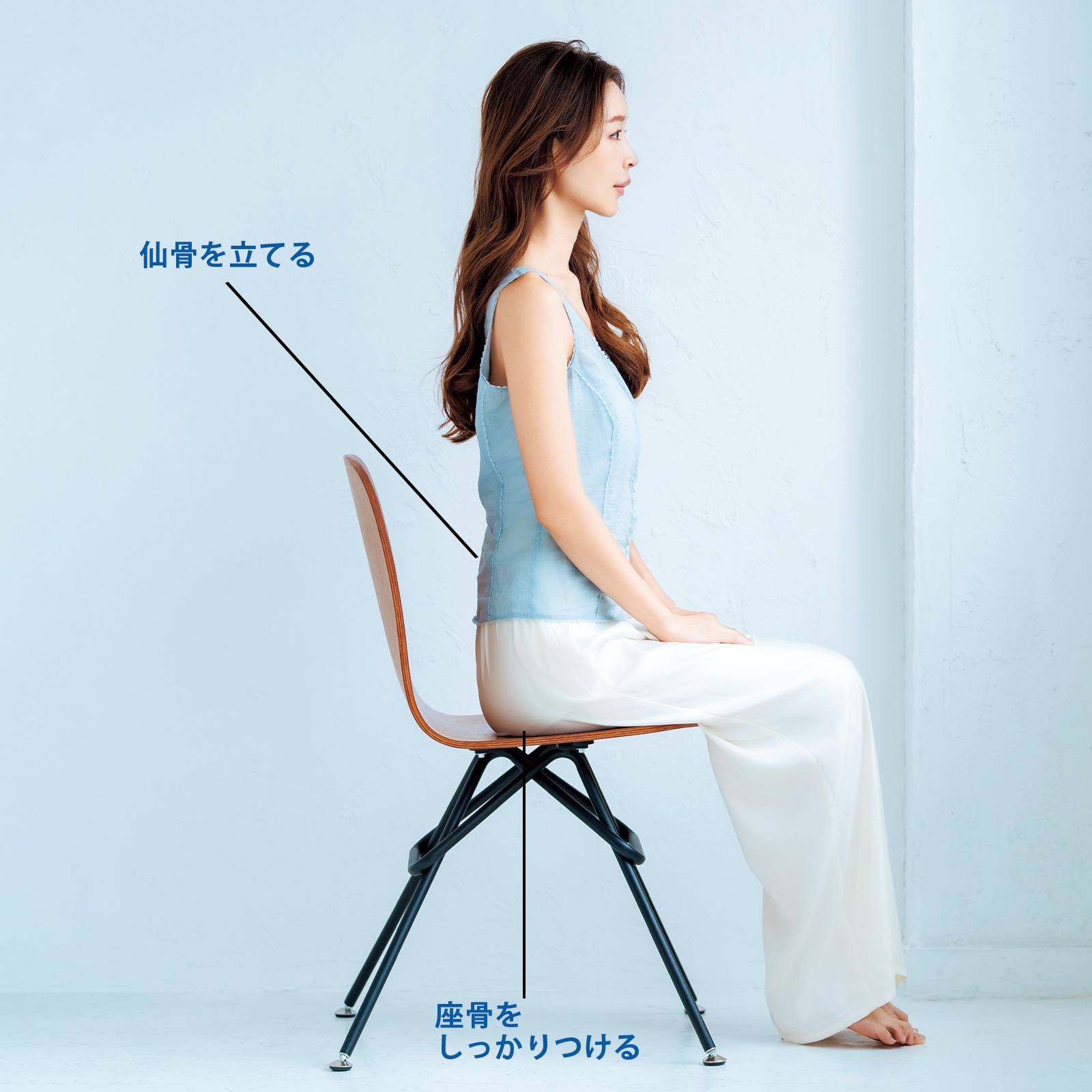 【2.座り方】仙骨を立てて、背もたれを頼らない