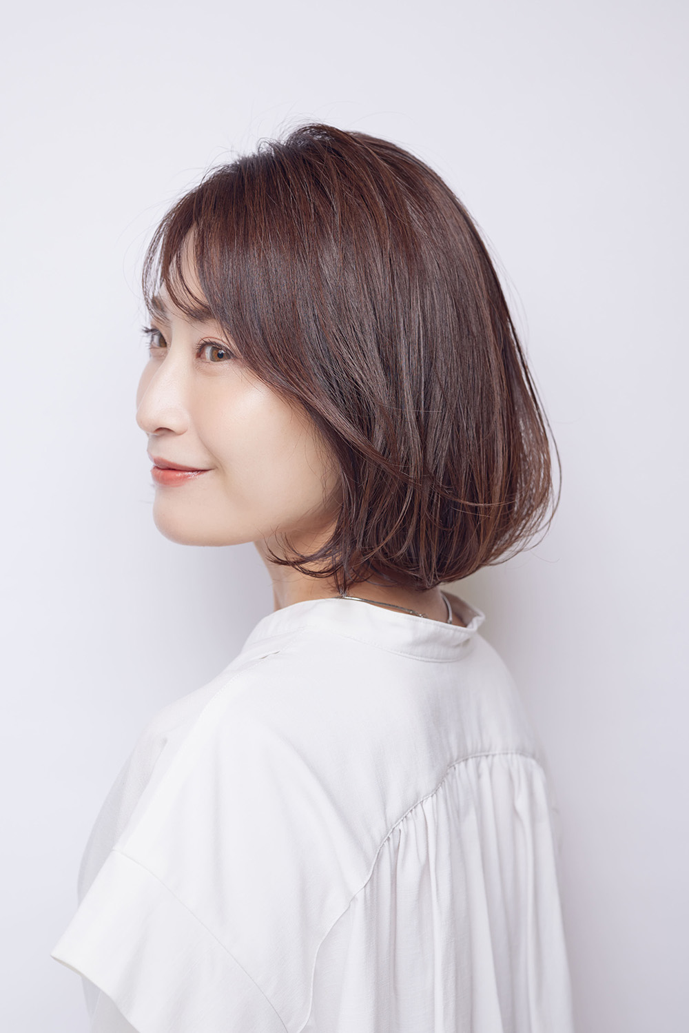 分け目が目立ってきた、生え際が薄くなってきたかも? 髪質が細く柔らかくなると、思わぬうねりや生えグセが現れてくるもの。そんな美スト世代におすすめしたいのが、ボブの重めシルエット×軽やかな束感の合わせ技。理想の自然なボリューム感を叶えてくれます。