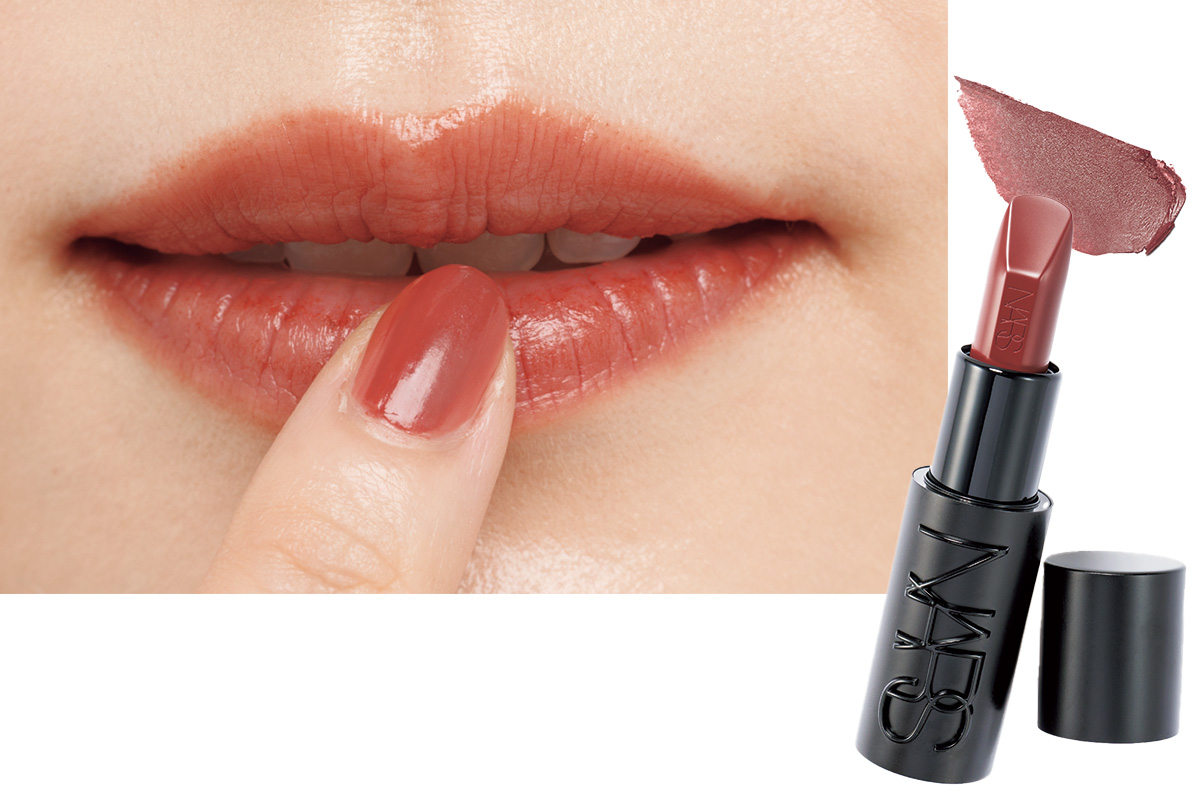 アイテム:ツヤにもフォギーにも質感を自在に調節。発色も◎。NARS エクスプリシット リップスティック 806 ¥5,280(NARS JAPAN)