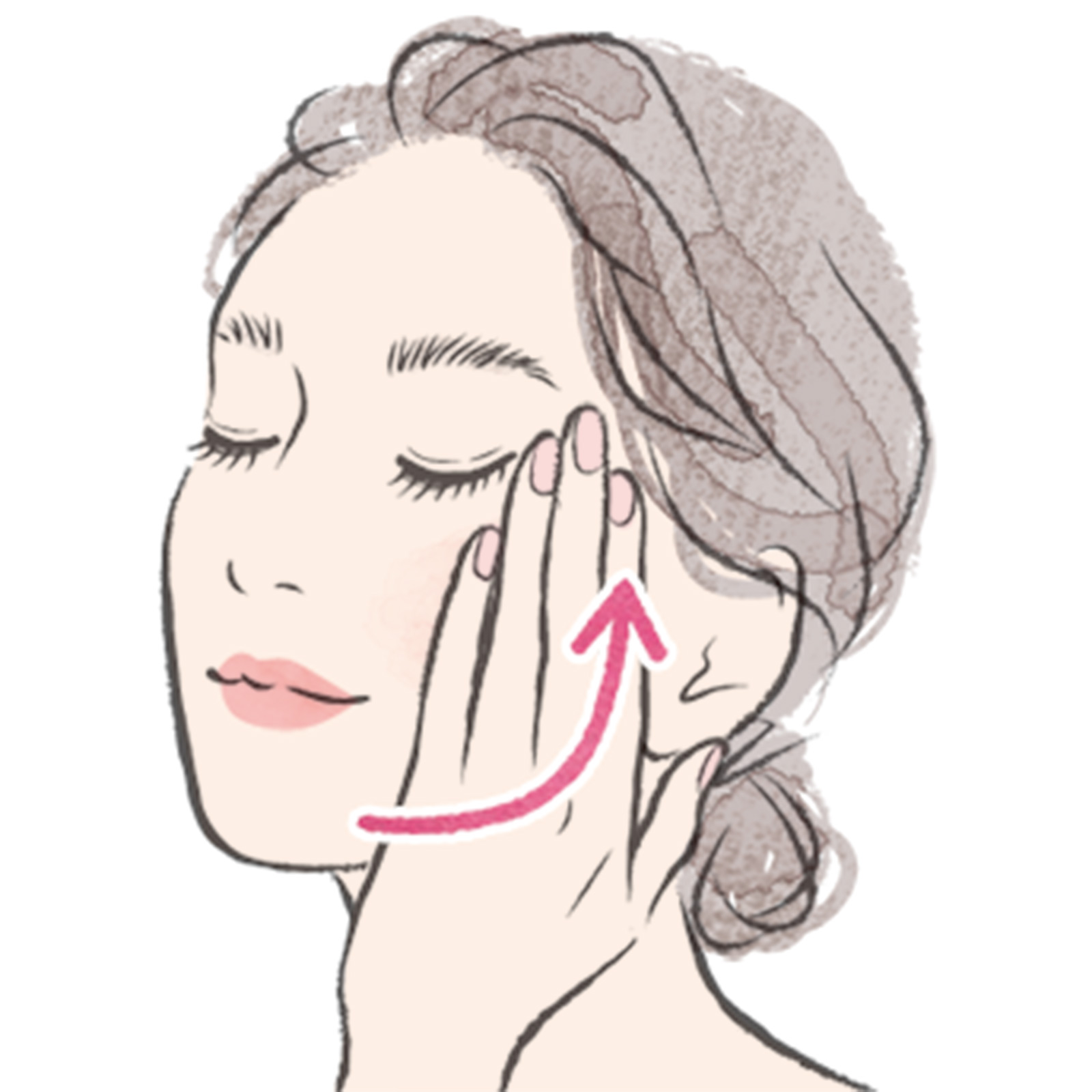 プレスしながらエッセンスを馴染ませ、顔の中央から外側、顎から上に向かって摺り上げるステップを入れると効果的。