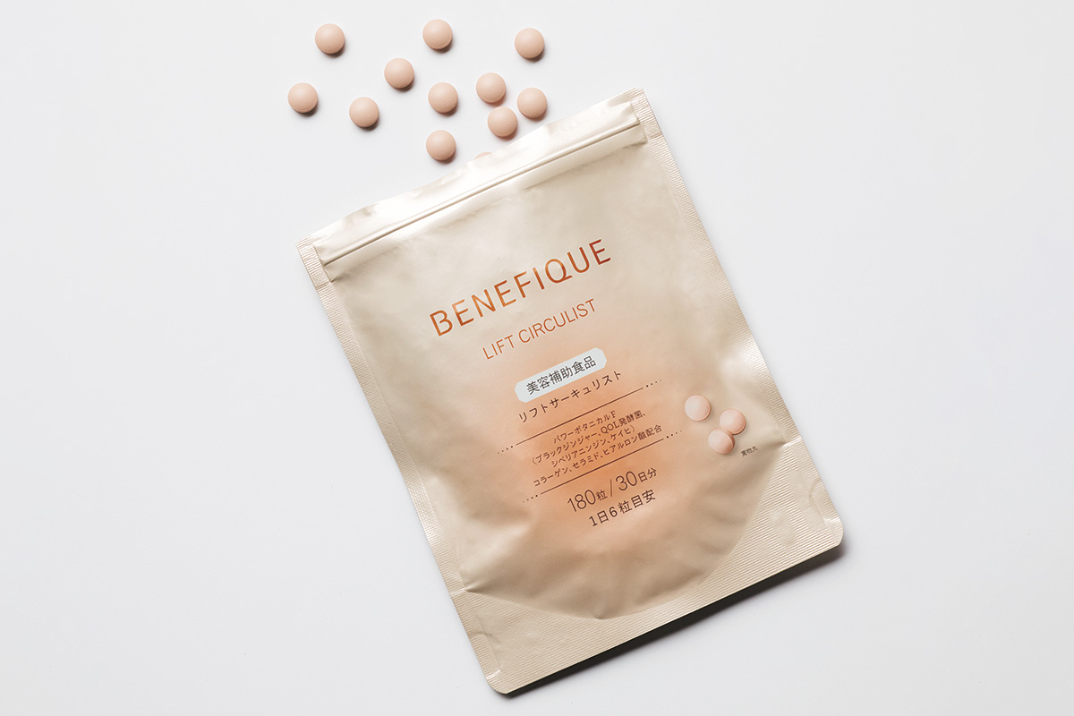 12種類の美容成分を贅沢に配合したサプリ。美を生み出すサイクルに着目した設計。左から、タブレット 126粒¥ 5,670、ドリンク 50ml 1本¥429(資生堂)