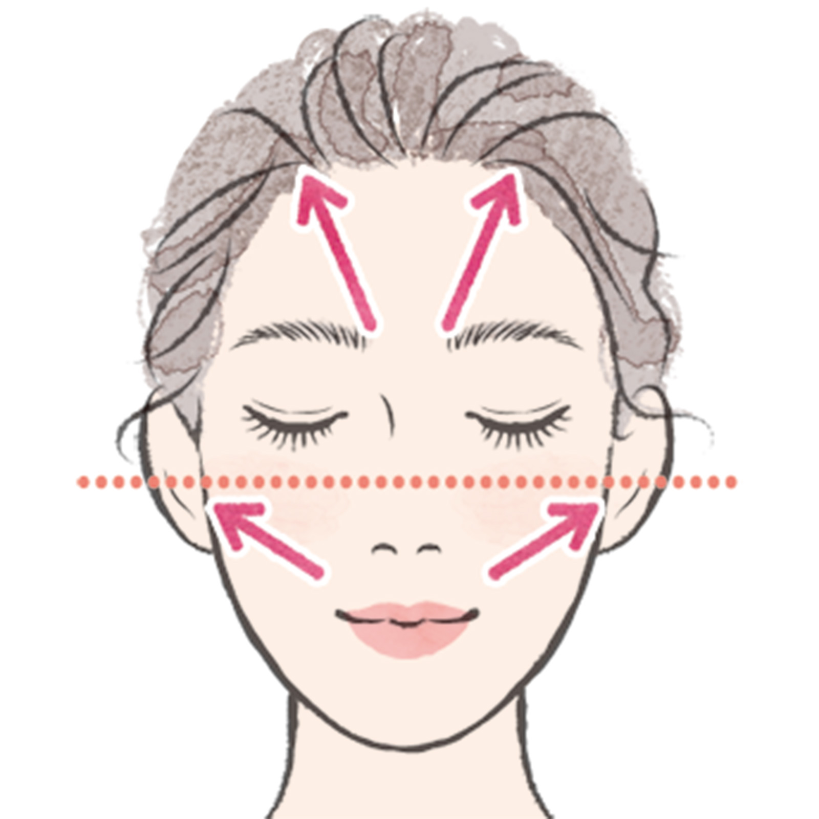 クリームを内側から外側に満遍なく馴染ませたら、顔上半分と下半分に分けハンドプレス。最後に手のひら全体で、顔の上半分と下半分を、中心から生え際、額際から鎖骨に向かって流してクールダウン。