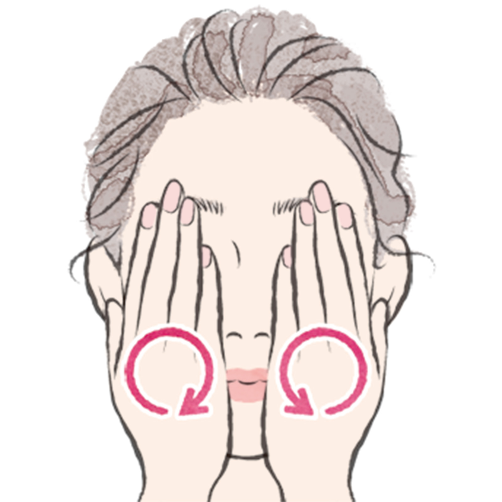 クリームを手のひらで肌温に温めてから、手のひら全体に馴染ませる。手のひらを頰に垂直に置き、圧力をかけるように3秒キープ。そのまま肌の奥を刺激するように、ゆっくり円を描く動きを。