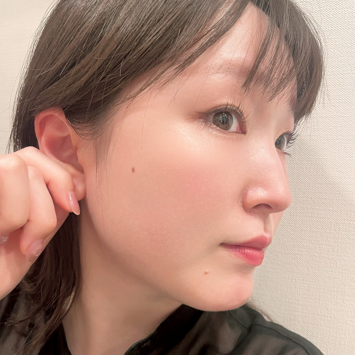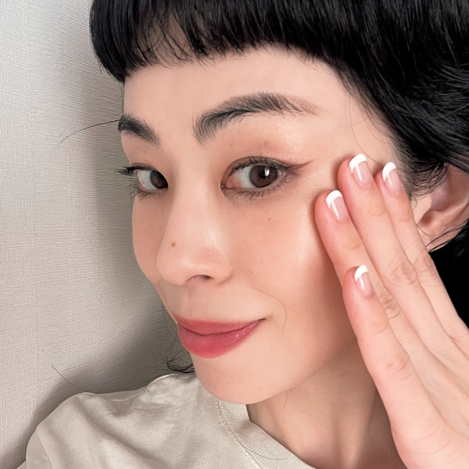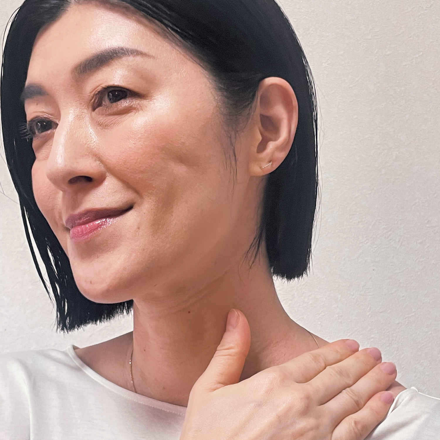 顔全体にまんべんなく馴染ませたら、耳や首の裏、そしてデコルテなどにくまなく伸ばします。さらりとしたテクスチャーなのでまだ暑い今の季節にぴったり。