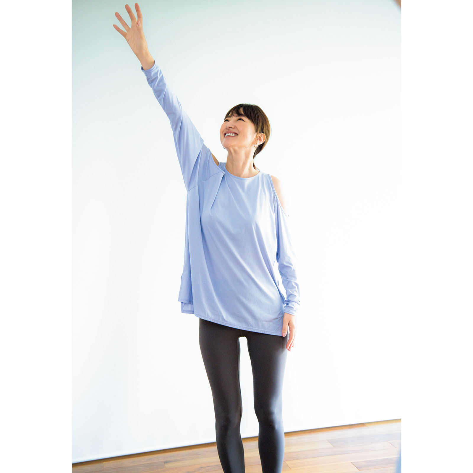 プルオーバー¥13,200レギンス¥12,100(ともにジュリエ ヨガ アンド リラックス)ピアス¥4,180(ミミサンジュウサン/サンポークリエイト)