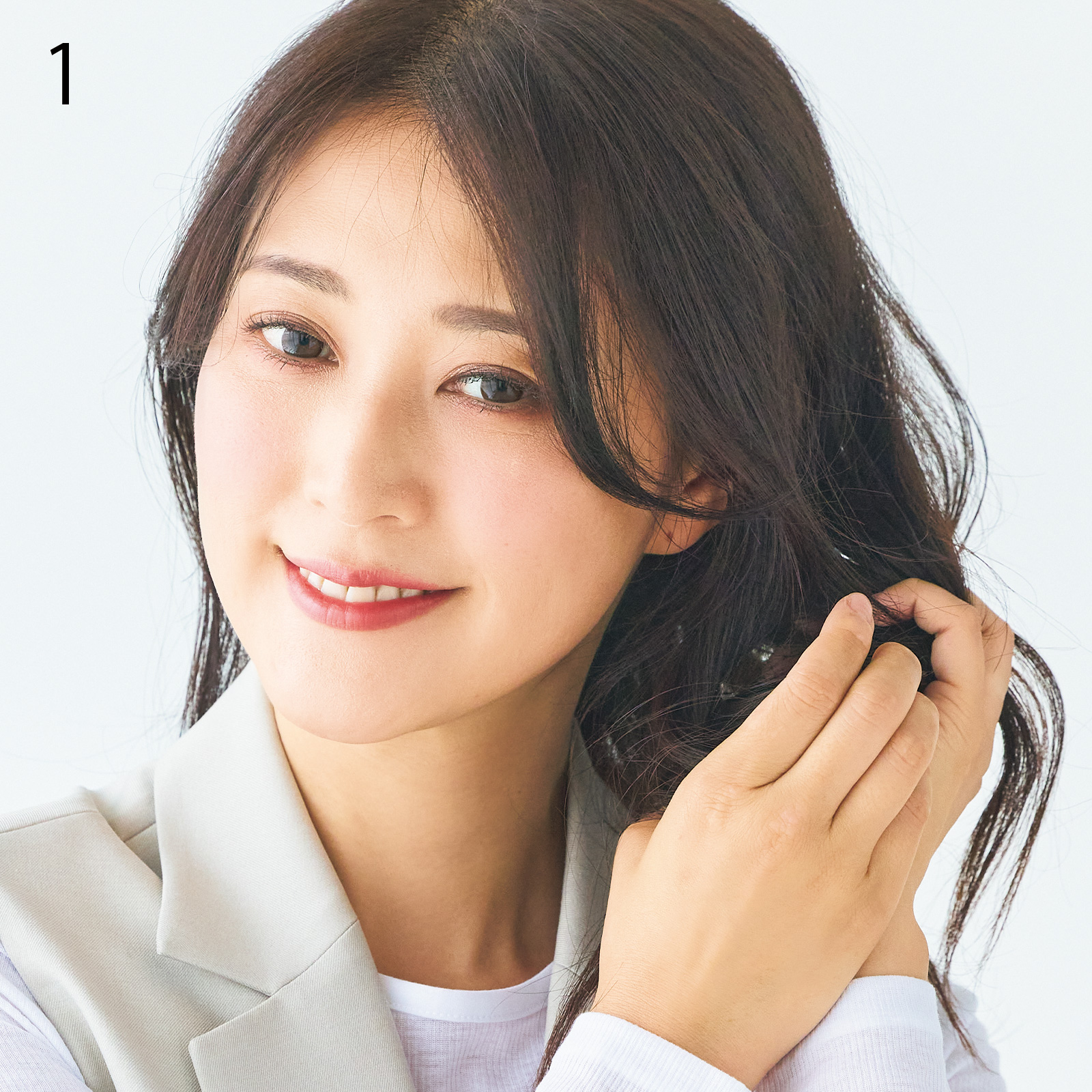 「細くてハリのない髪質で量も少ないので、全体にペタンとしています。特に生え際や分け目が薄く、頭皮が透けて見えるのが悩み」(黒沢さん)