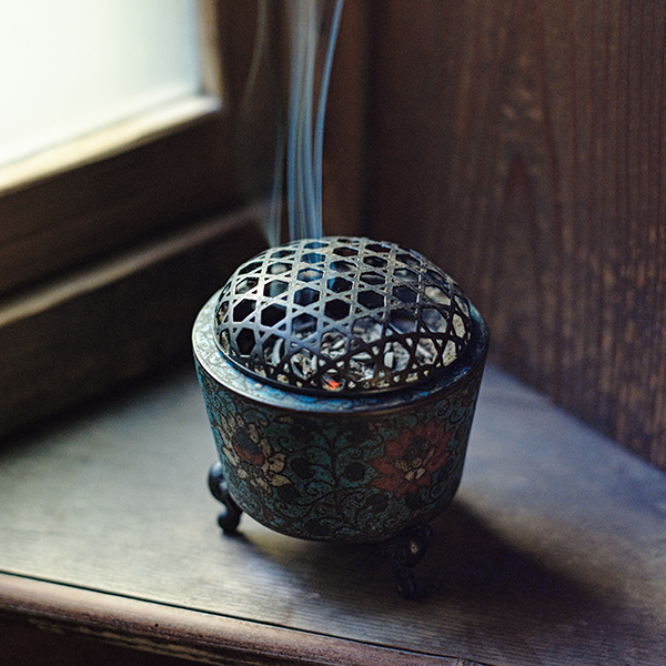お香を香炉で焚くようになったのは、結婚して京都の骨董店でお気に入りを見つけてから。伽藍、白檀、沈香など和の香りが好み。来客前には必ず、夫も毎朝仏前に香を焚きます。