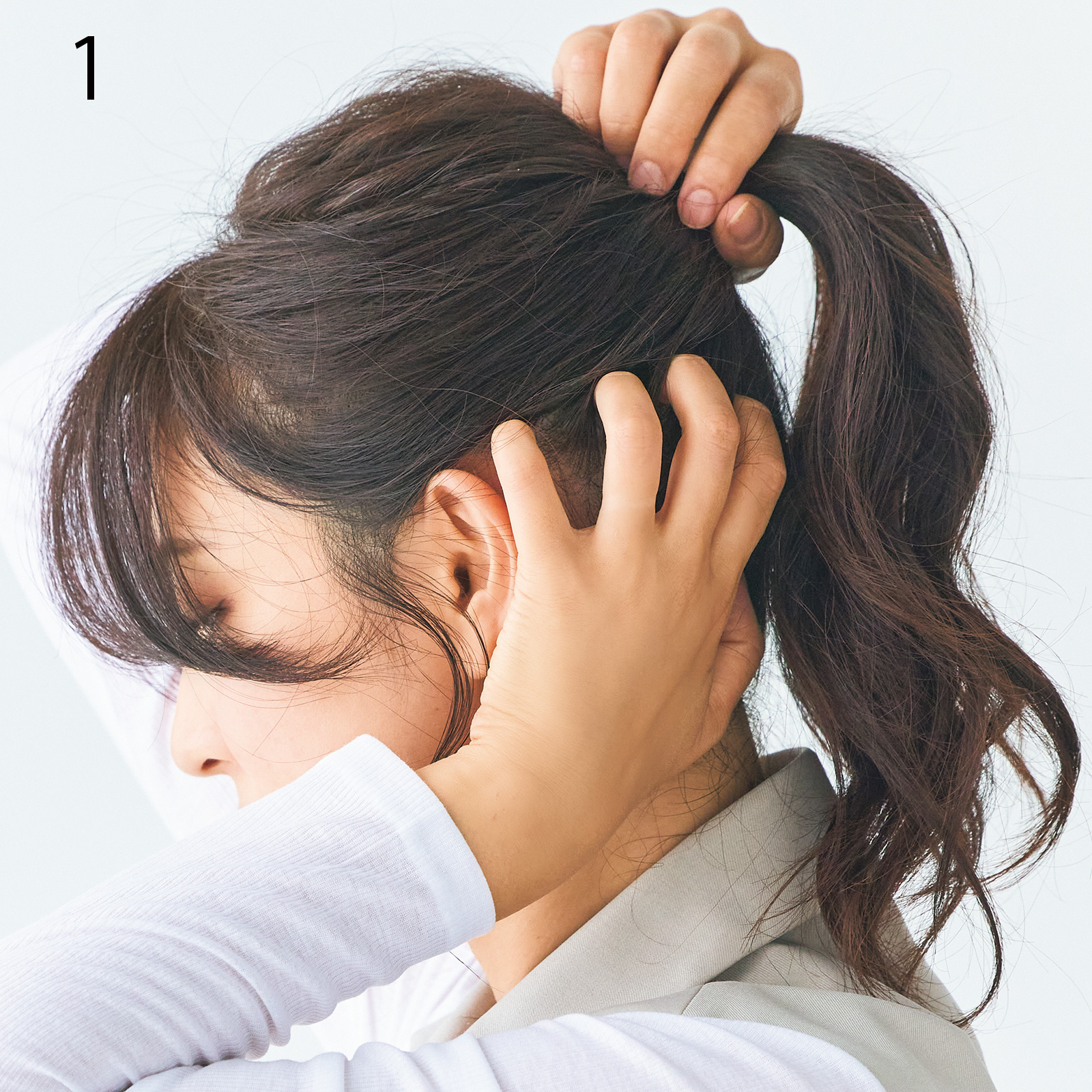 上向き毛流れの分け目が全くないポニテで髪型も気分も若々しく!