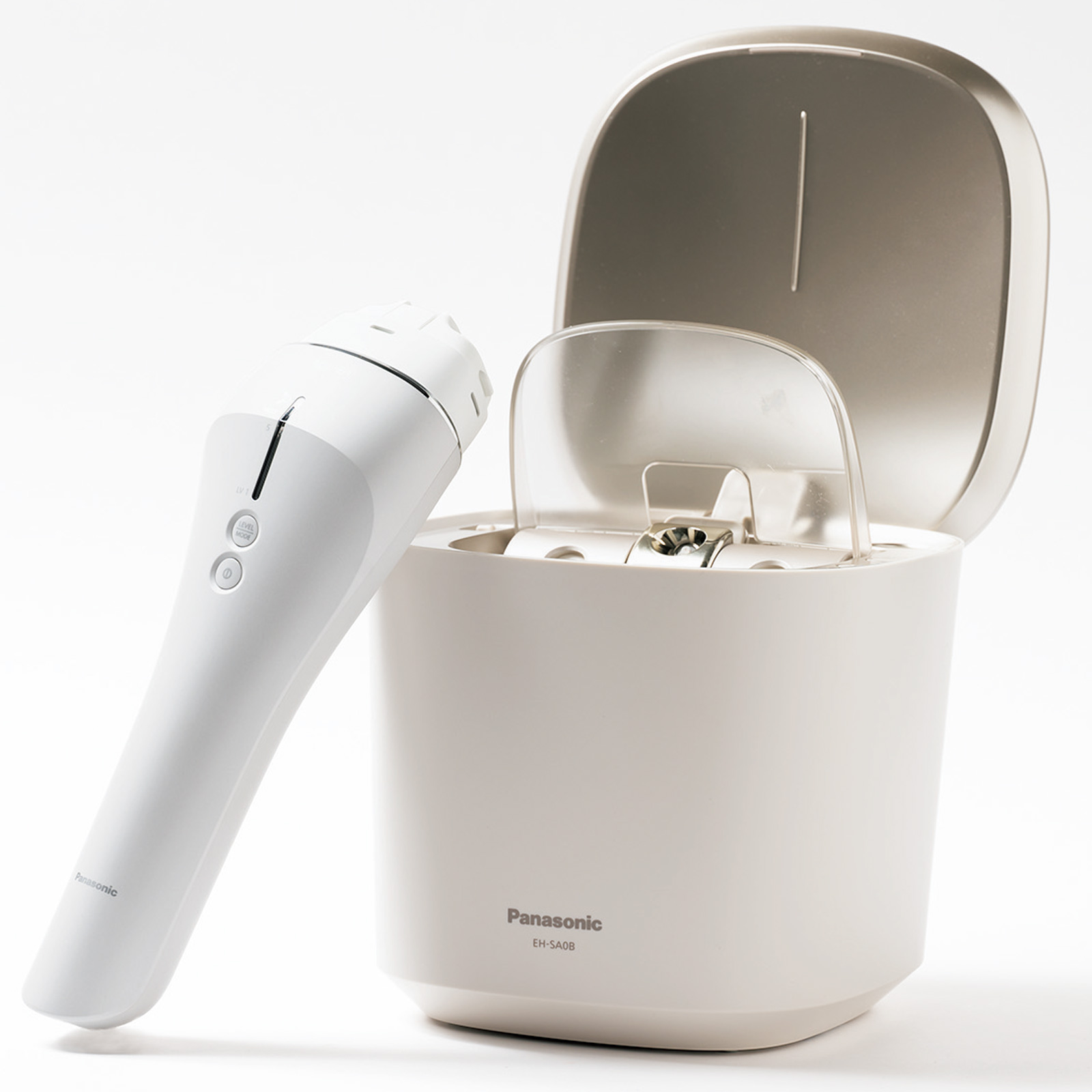 毎晩パナソニックのスチーマーで肌を柔らかくしてからスキンケア。同ブランドの光美顔器は、美肌フラッシュモードにして週1〜2回角質ケアを。