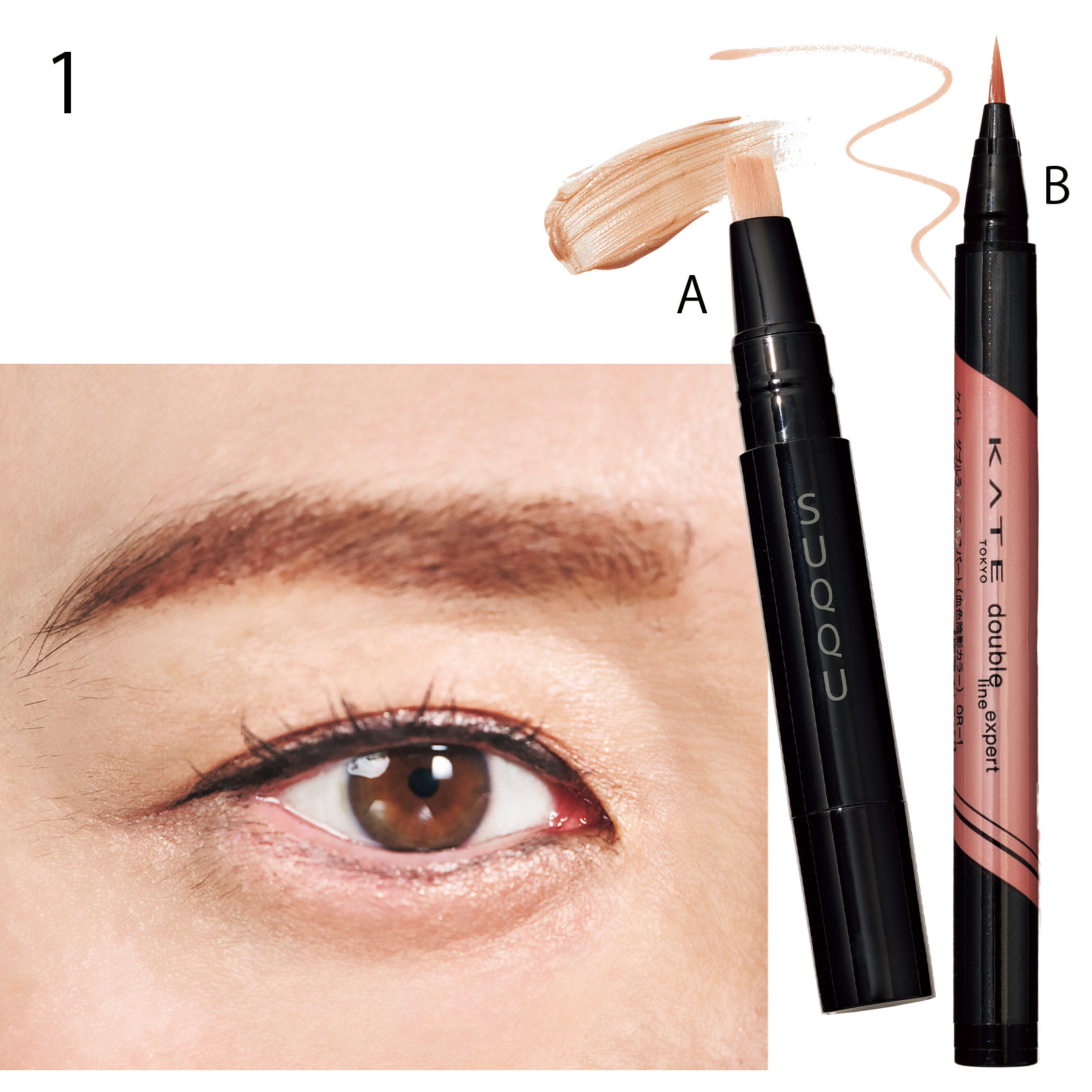 B.極薄オレンジ&極細筆ペンで涙袋の影を簡単に強調。ケイト ダブルラインエキスパート(血色陰影カラー)OR-1 ¥935〈編集部調べ〉[一部店舗・webにて発売](カネボウ化粧品)