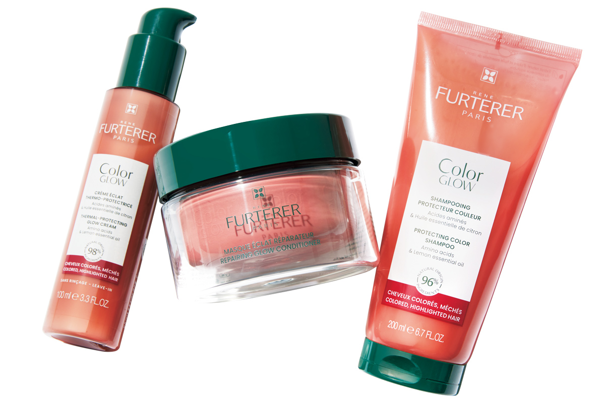 ヴィーガン処方でカラーリングのダメージから髪を労り、補修・保護。左から/ルネ フルトレール カラーグロウ プロテクトクリーム 100ml ¥3,520、同 プロテクトコンディショナー200ml ¥5,610、同 プロテクトシャンプー 200ml ¥3,190(すべてブルーベル・ジャパン)