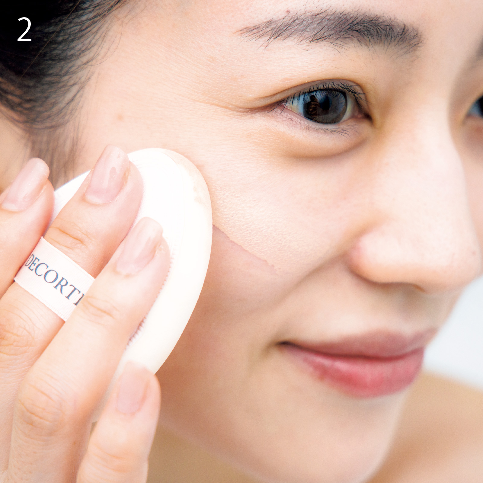 ポイント2:適度なカバー力と自然なツヤがでるAのファンデは、伸ばした後タッピングすると毛穴が目立ちません。