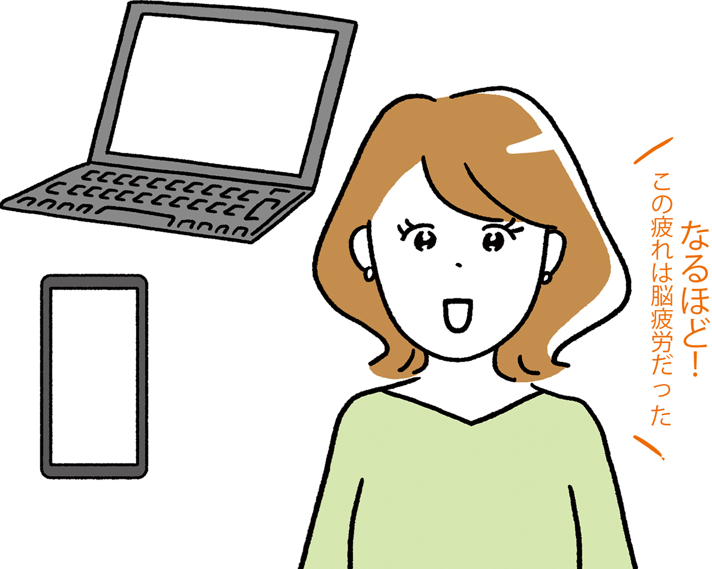 筋肉疲労はないのに体が疲れている、よく寝たのに朝起きた時に疲れが取れていない、などと自覚する状態が脳疲労の症状。脳が大量の情報を処理しきれずに正常に働いていない状態で、脳疲労が持続すると自律神経が乱れて体に影響が出ることも。物忘れ、判断力の低下、不安やイライラなどが具体的な症状です。