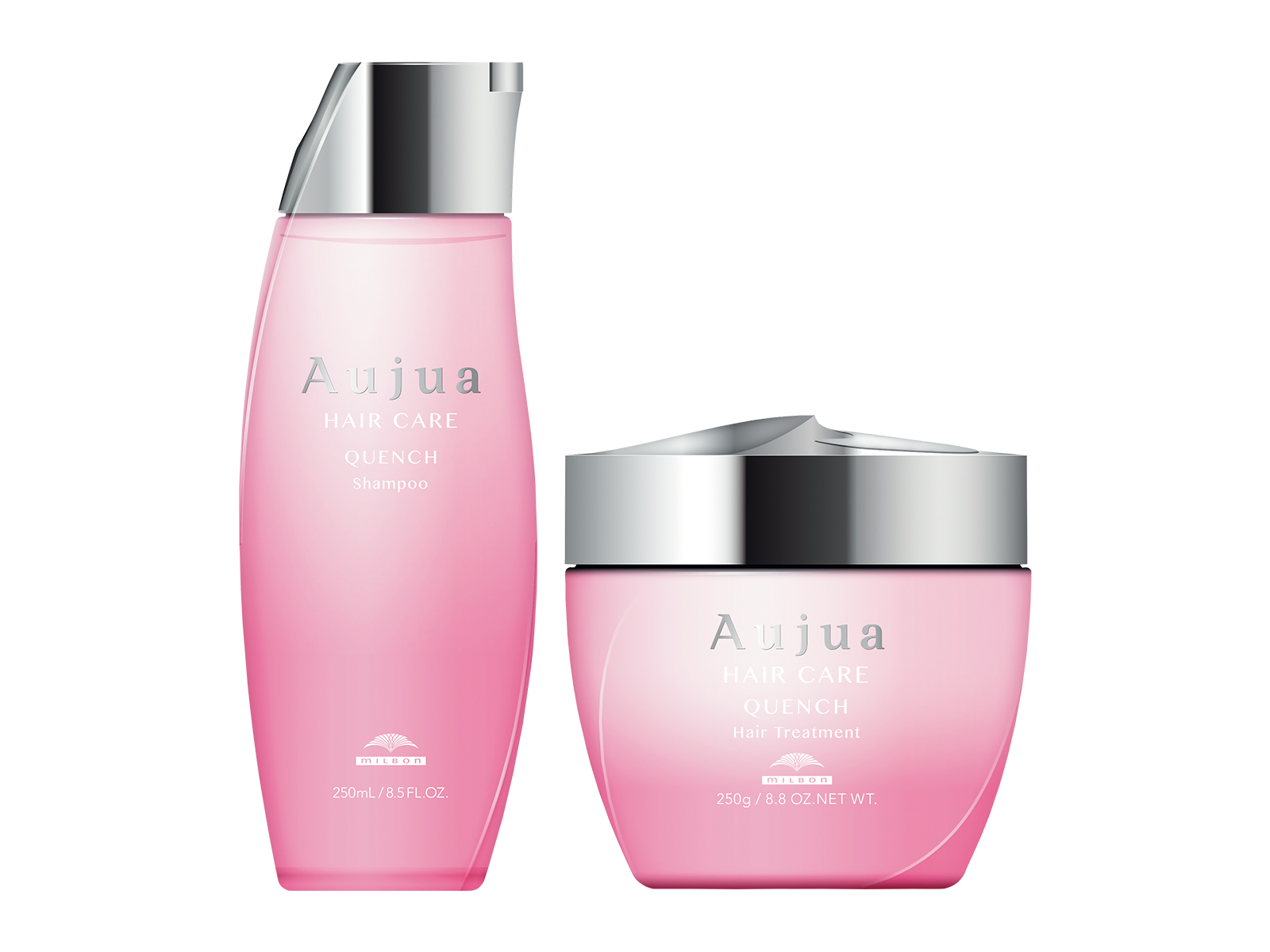 「日本人の髪には日本製のシャンプーが合うんだなと実感しながら愛用中。一時帰国したら毎回買い溜めしています」〈右から〉オージュア クエンチ ヘアトリートメント250g ¥4,180同 シャンプー250ml¥3,080(ともにミルボン)