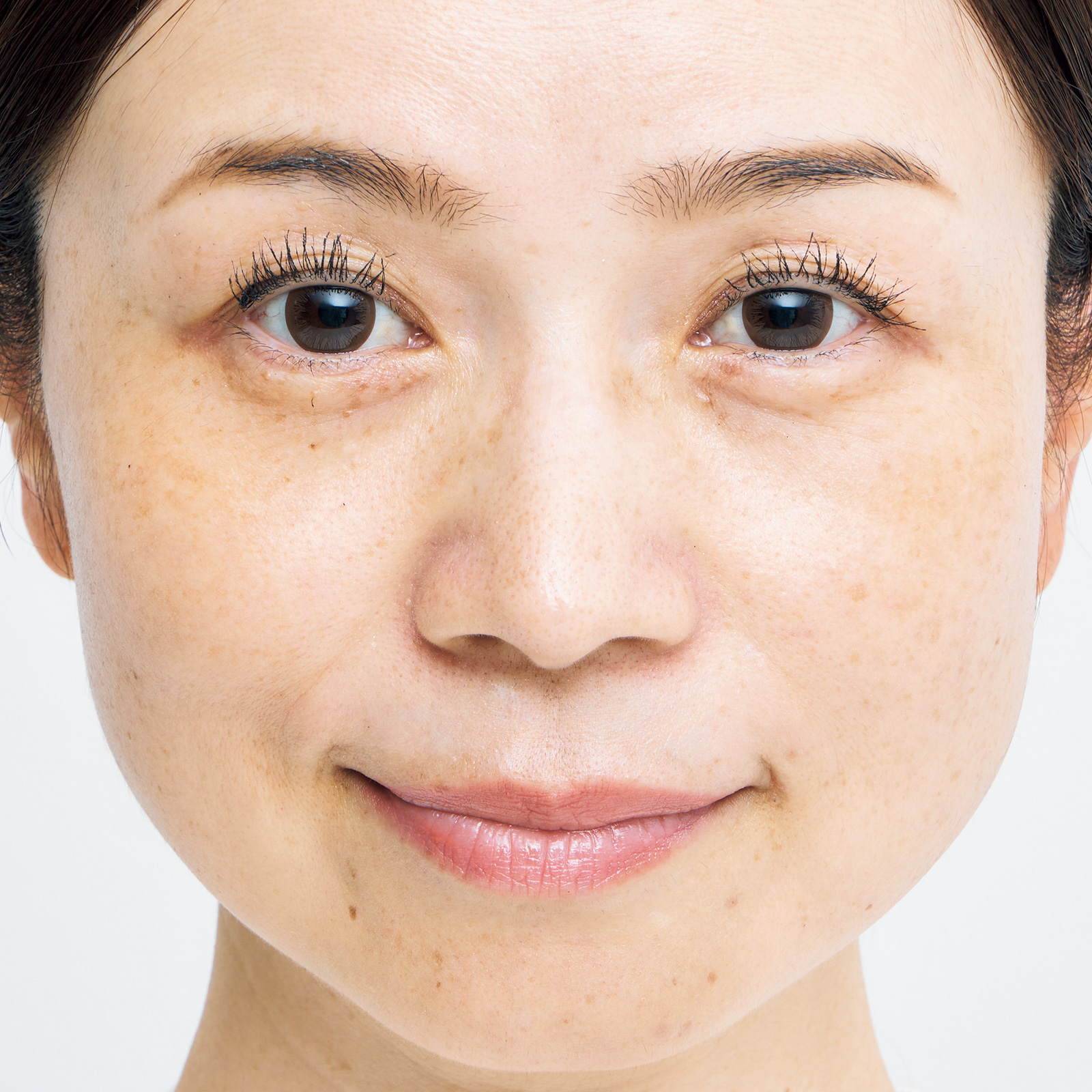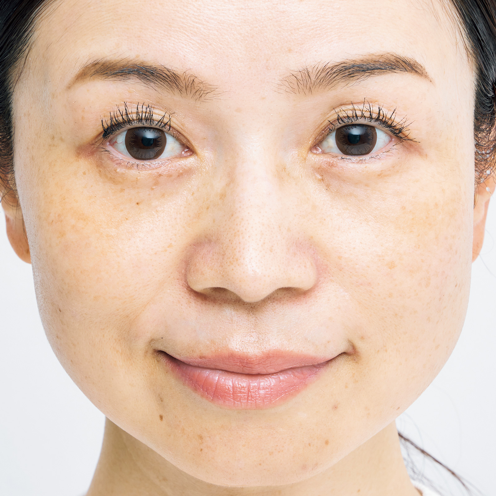 最後に下から上へゆっくりスライドさせて半顔が終了。半顔につき、ケア時間はたったの1分です。
