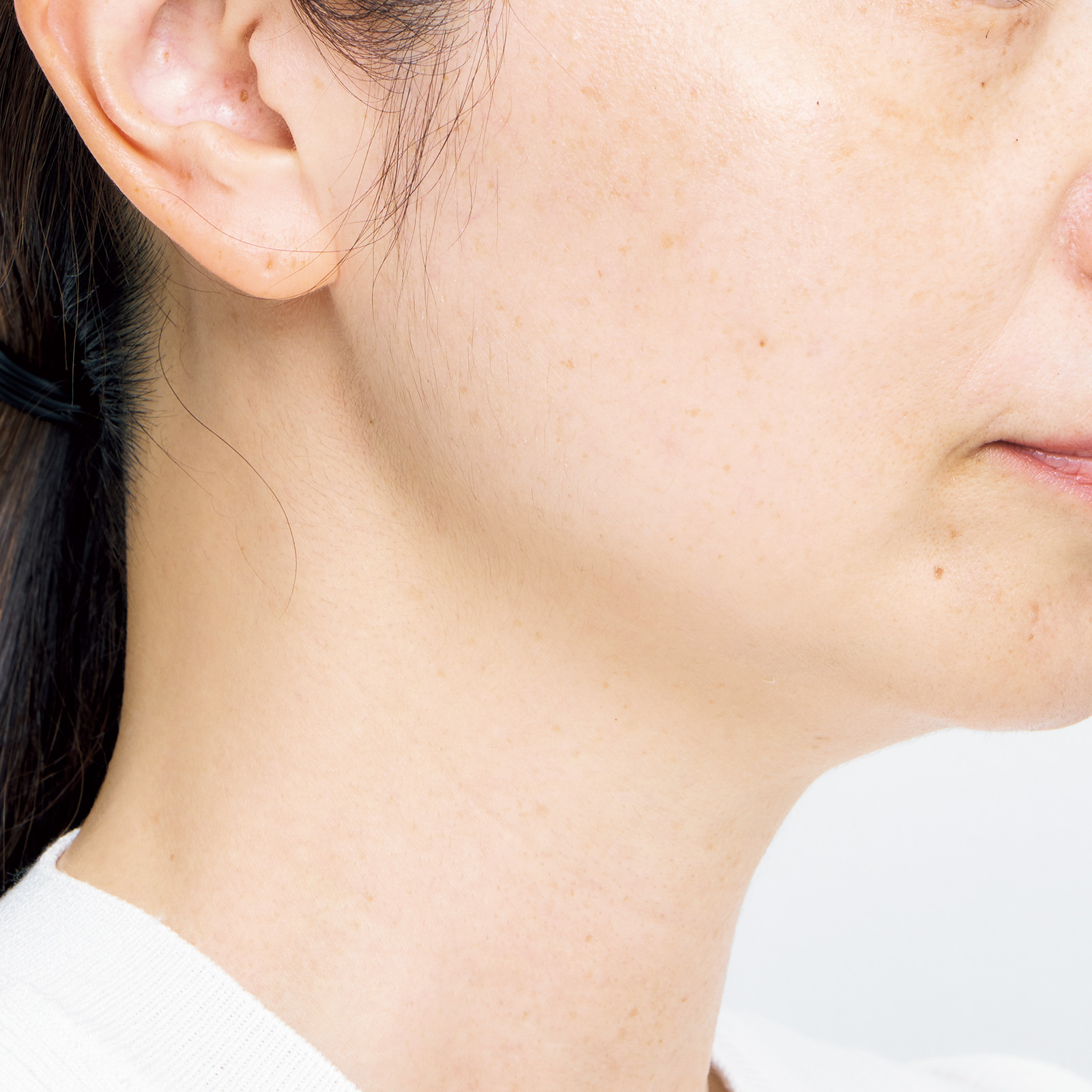 もたつきが気になっていたフェイスラインの骨格がくっきりと出て、痩せて見えます。胸鎖乳突筋部分をケアすると肩こりも軽くなります。