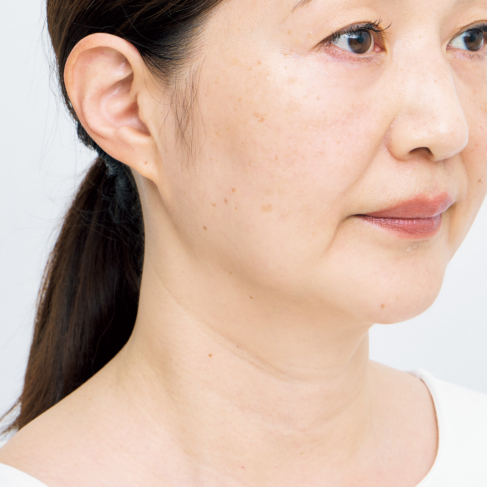あご下を集中ケアしたところ、たった1回でたるみで曖昧だったフェイスラインがくっきりして、シャープな印象になりました。