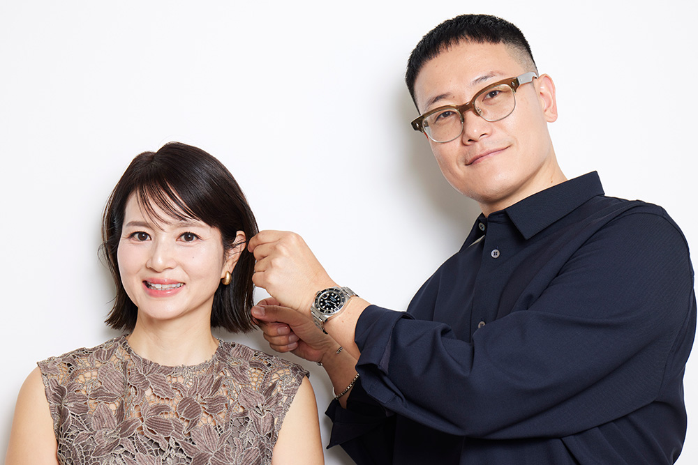 「あのネジュ先生にヘアをしていただき夢のような時間でした。長年悩み続けていた癖のある形をあっという間に解決してくださり驚きと感動でいっぱいです。自分でもトップを立ち上げることを意識して日々のヘアセットを頑張りたいと思います」(蓮見さん)