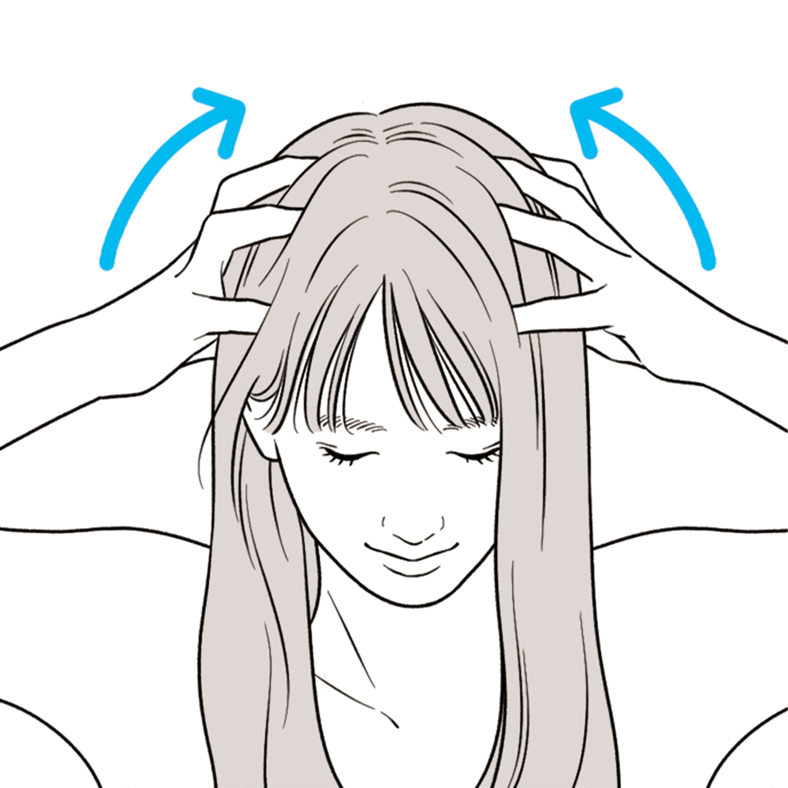 2.指の腹で頭頂部を中心にマッサージ