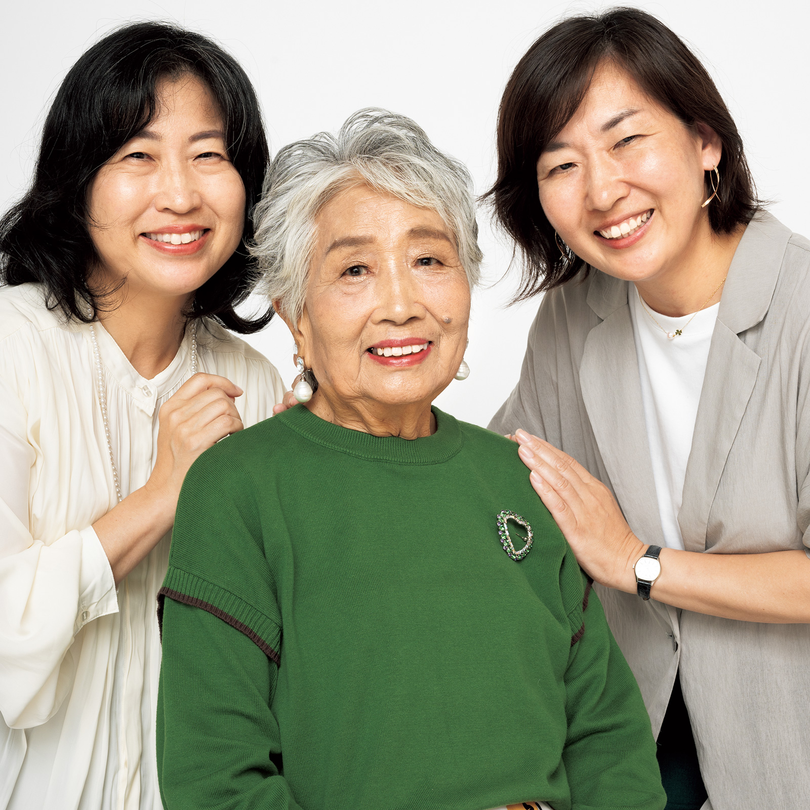 「母はがんの治療中ということもあり、オシャレへの関心が薄れていましたが、撮影をきっかけにスキンケアやメイクにも興味が出てきたようです。気持ちが健やかになるきっかけになったと思います」(右/娘・百佳里さん)「とても素敵な変身でしたし、いつもと違う母のハツラツとした笑顔が見られて、私もとても嬉しかったです」(左/娘・奈津恵さん)