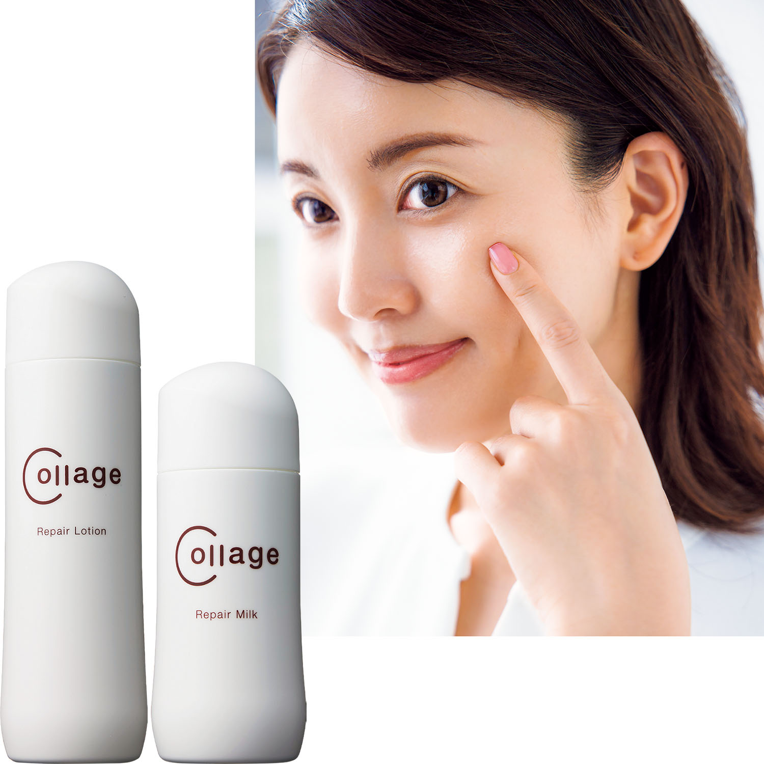 ゆらぎ肌の時でも安心して使えるコラージュリペアローションとリペアミルクでたっぷり保湿。肌の水分量がぐんとUPするようで、しっとりします。