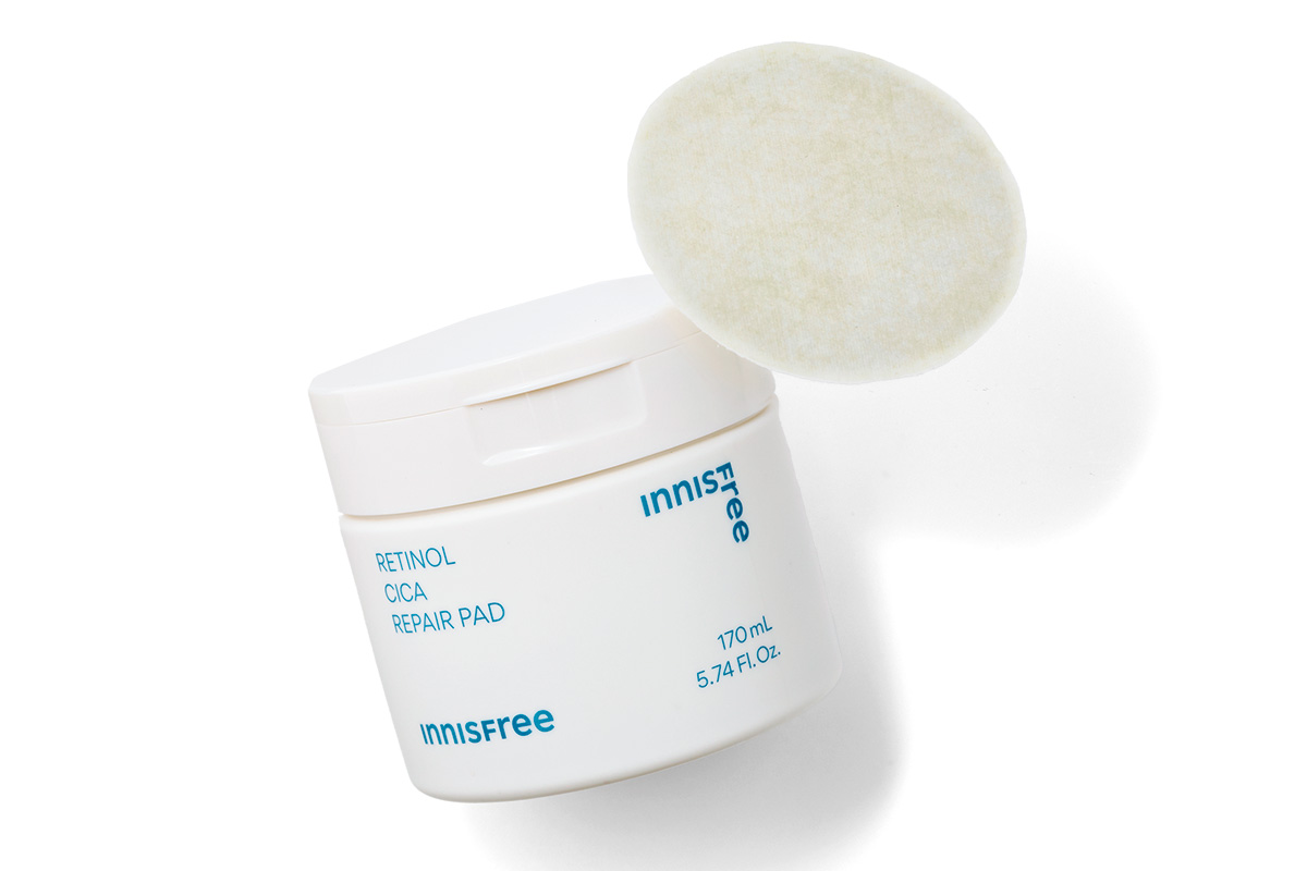 使うたびに、つるつるもっちりの触り心地の良い肌へ導く。 レチノール シカ リペア パッド 60枚 ¥2,970(INNISFREE)
