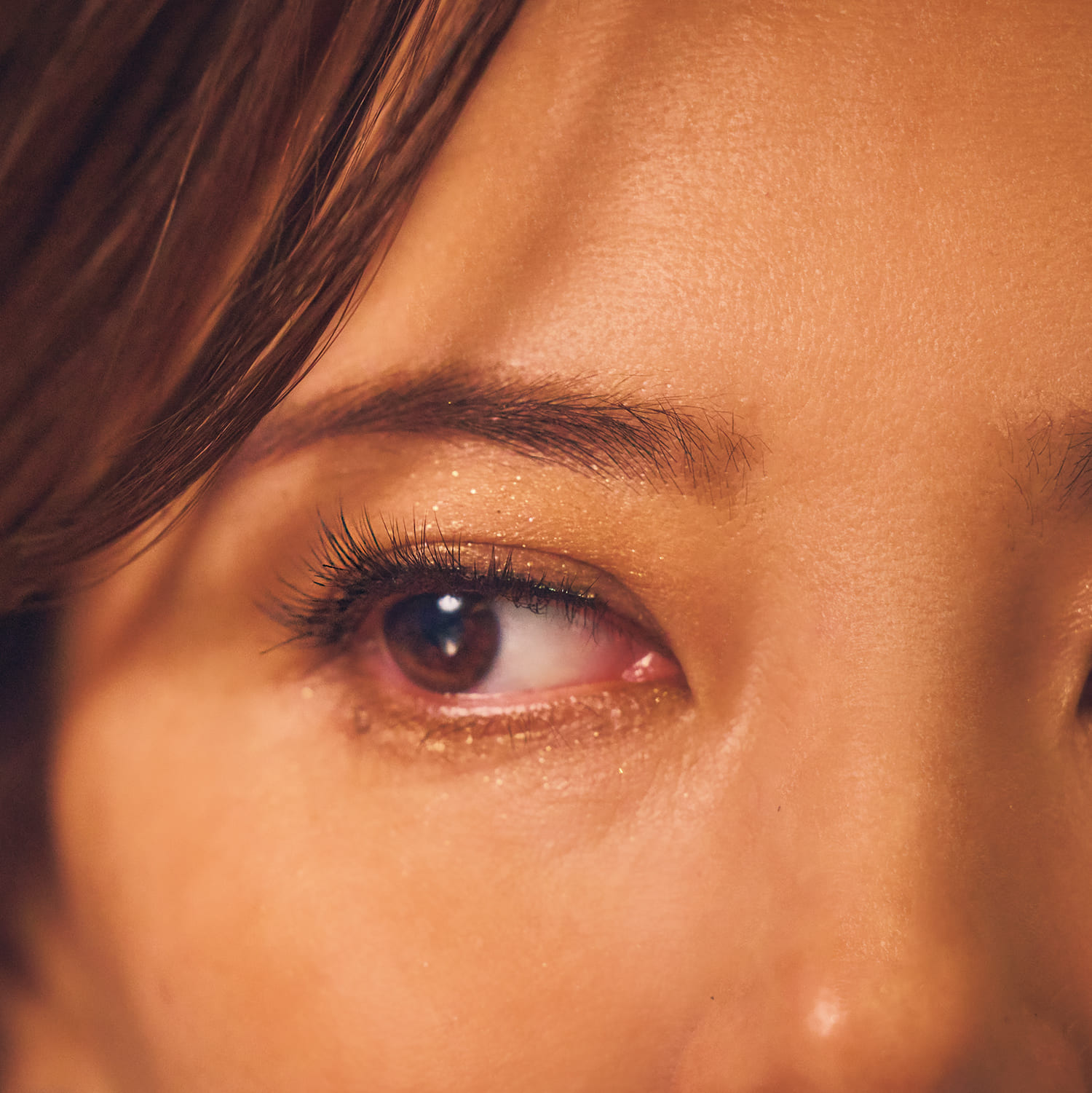 「暗いシーンは、カラーアイテムに力を入れても色が目立たないので厚化粧になるだけ。ノリ付きでまつ毛にのせるだけでOKなワンタッチまつエクを使って、目尻に奥行きを出して目力を高めます!光を味方につけたいので、ルナソルのジェミネイトアイズ 01番のセンターのラメを上まぶたにサッと一塗りして、キラキラを仕込みます」