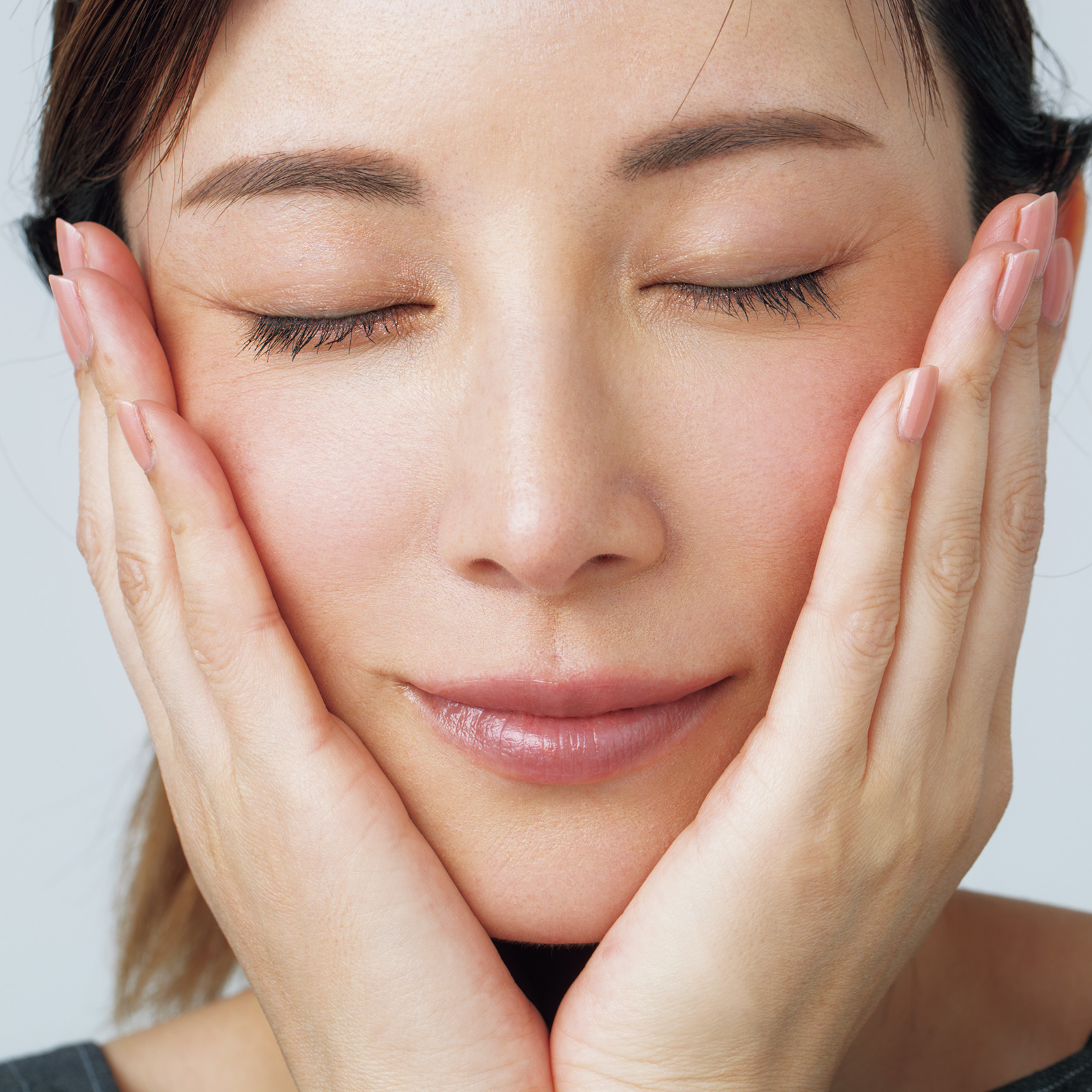 下地はスキンケアクリームのように両手のひらで丁寧に馴染ませます。温めながら塗布すれば、素肌に溶け込むように馴染んで一体化。