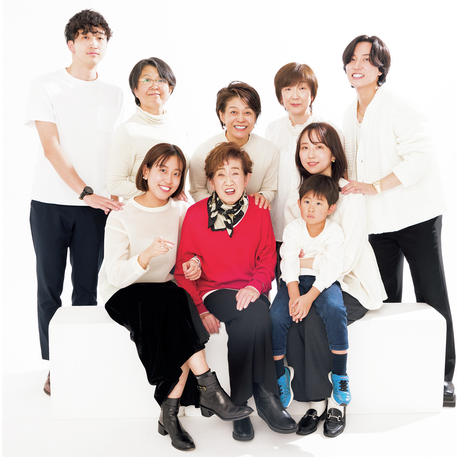 「赤黒の色合わせが新鮮でカッコよかったです」(中央上/娘・仁美さん)「祖母の笑顔で皆がハッピーになりました」(左下/孫・彩希さん)