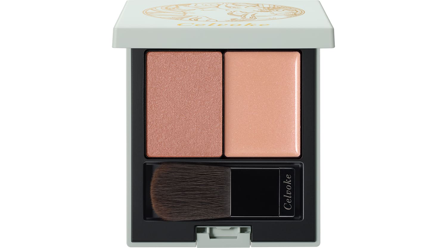 パーリィピンクのクリームにブリックローズのパウダーチーク。緻密に計算された色と質感のレイヤードで、血色感と彫りの深さ、湧き上がる湿度と透明感のすべてを叶える、ハイライト×ブラッシュカラーです。