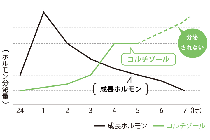 夕食時に糖質オフすると睡眠中にエネルギー切れを起こし、成長ホルモン生成が阻害されたり疲労物質が分解されないなどのリスクが。特にホルモンの一種であるコルチゾール不足は夜間低血糖を引き起こし、体が動かせない気絶状態となって寝返りが打てず、全身がガチガチに。さらに低血糖を解消しようとアドレナリンが分泌され途中覚醒の原因にもなるので要注意です。
