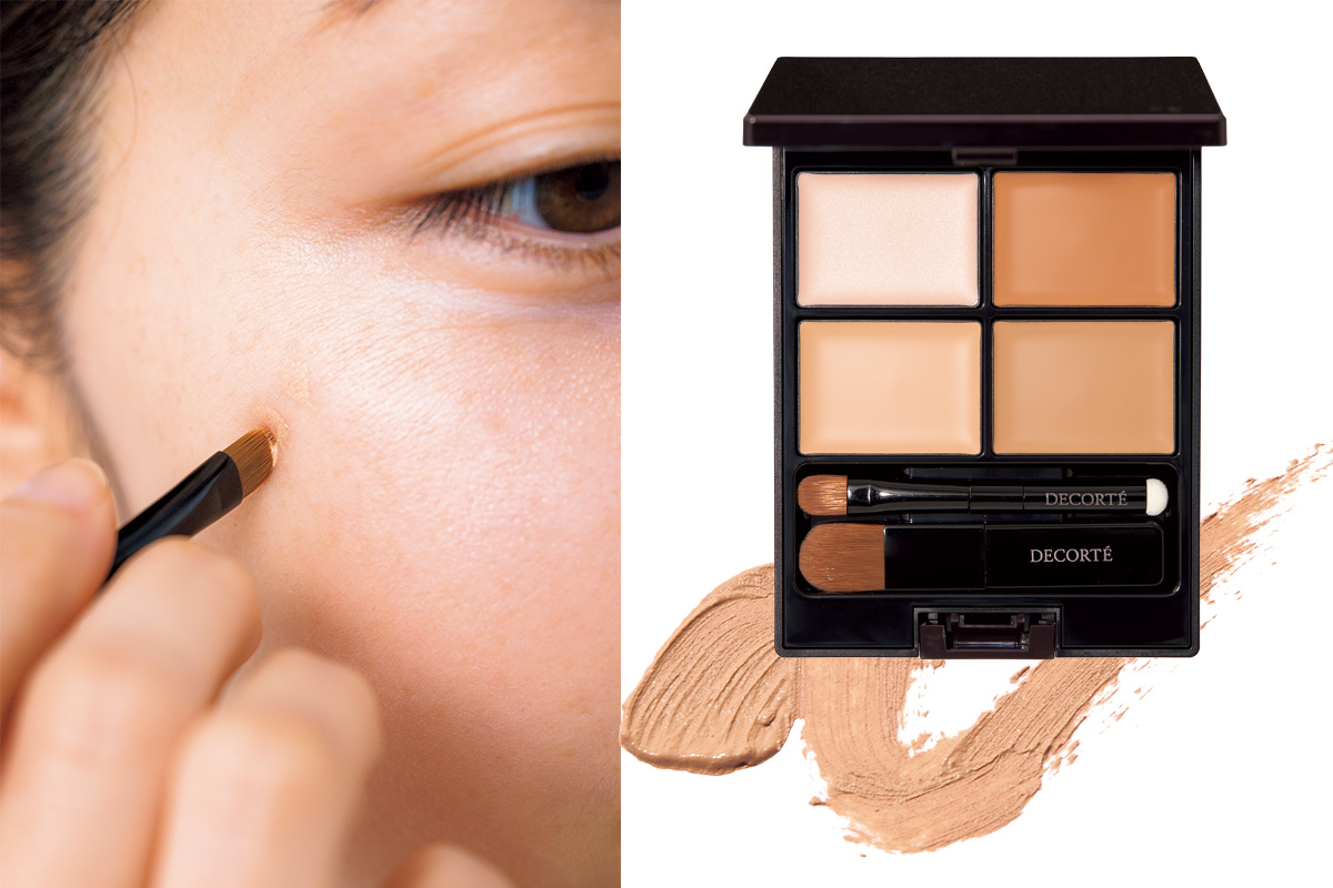 ファンデは使わず、コンシーラーでパパッとカバー&立体感プラス。最初に青みを放つベースを仕込み、透け感ある肌が完成。